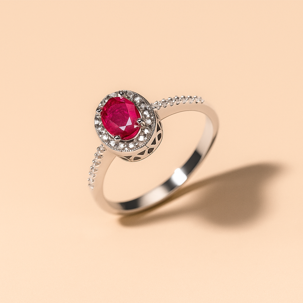 Anillo Rubí Natural Ovalado con Halo #13 $198.000