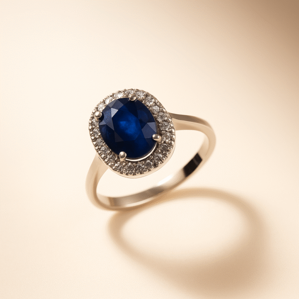 ANILLO DE ZAFIRO AZUL CORTE OVALADO CON HALO DE CIRCONES BLA $289.000