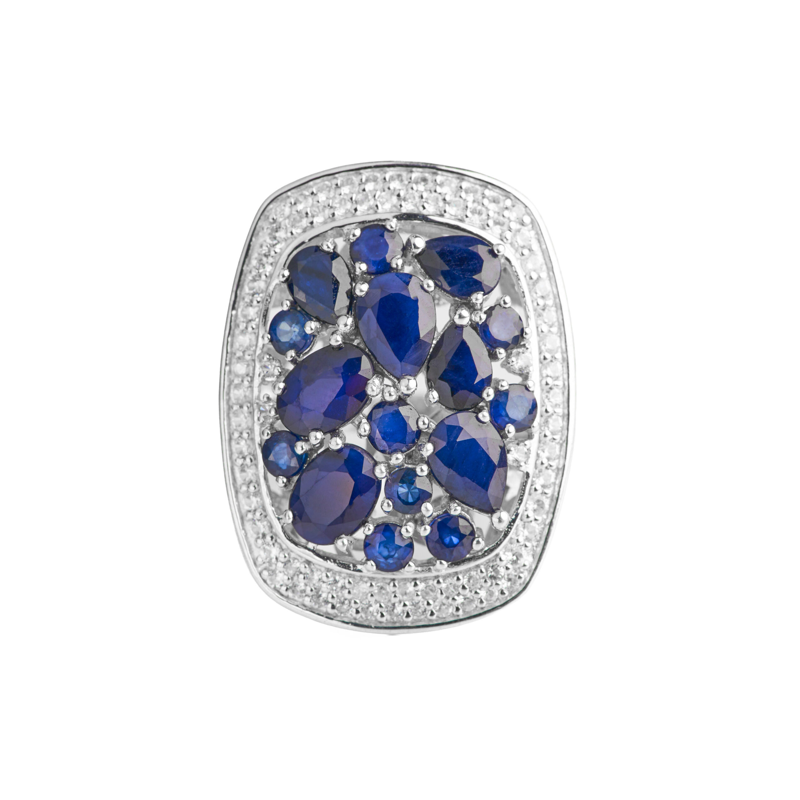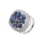 Anillo de plata esterlina 925 con  zafiros azul naturales  engastados en placa de plata con circones blancos. Talla 20