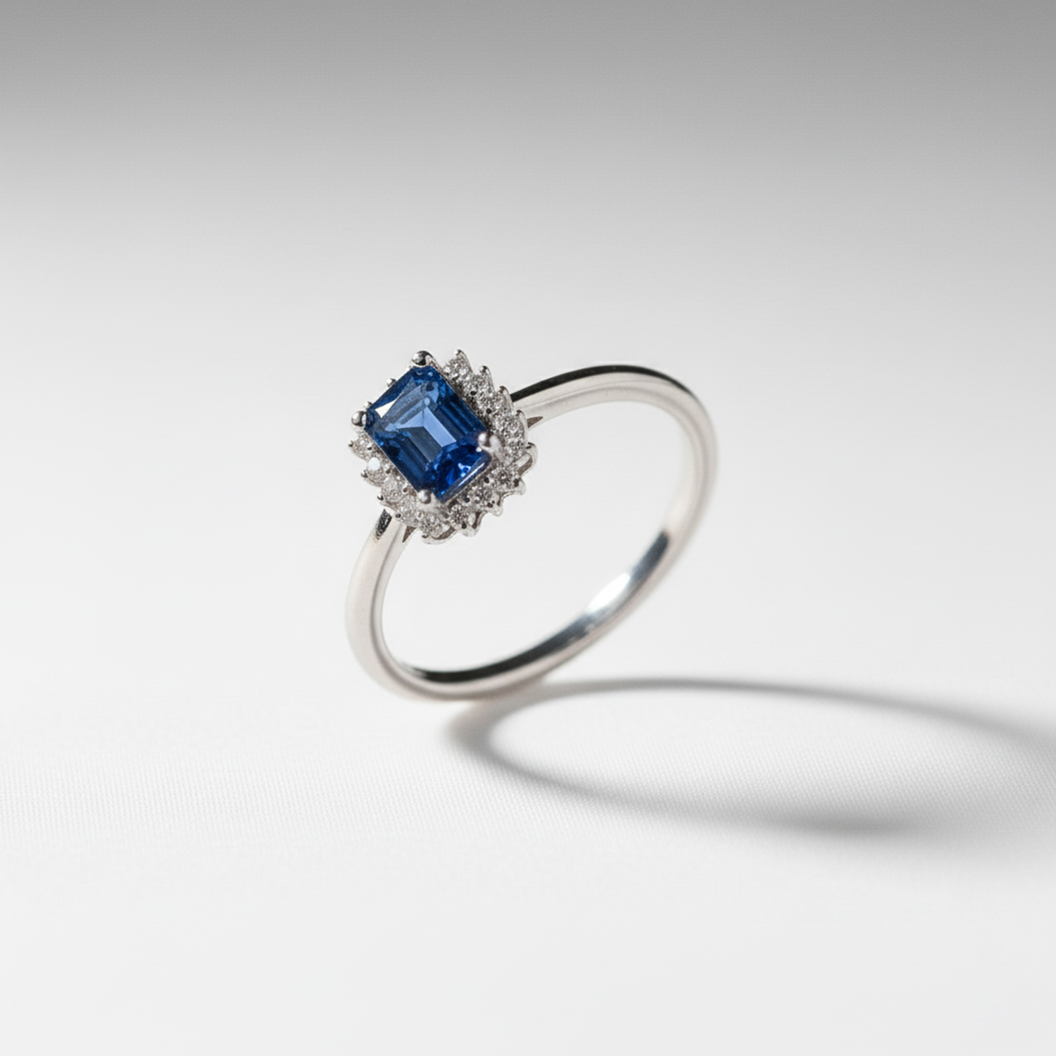 Anillo Solitario Zafiro Natural con Halo #15 $198.000