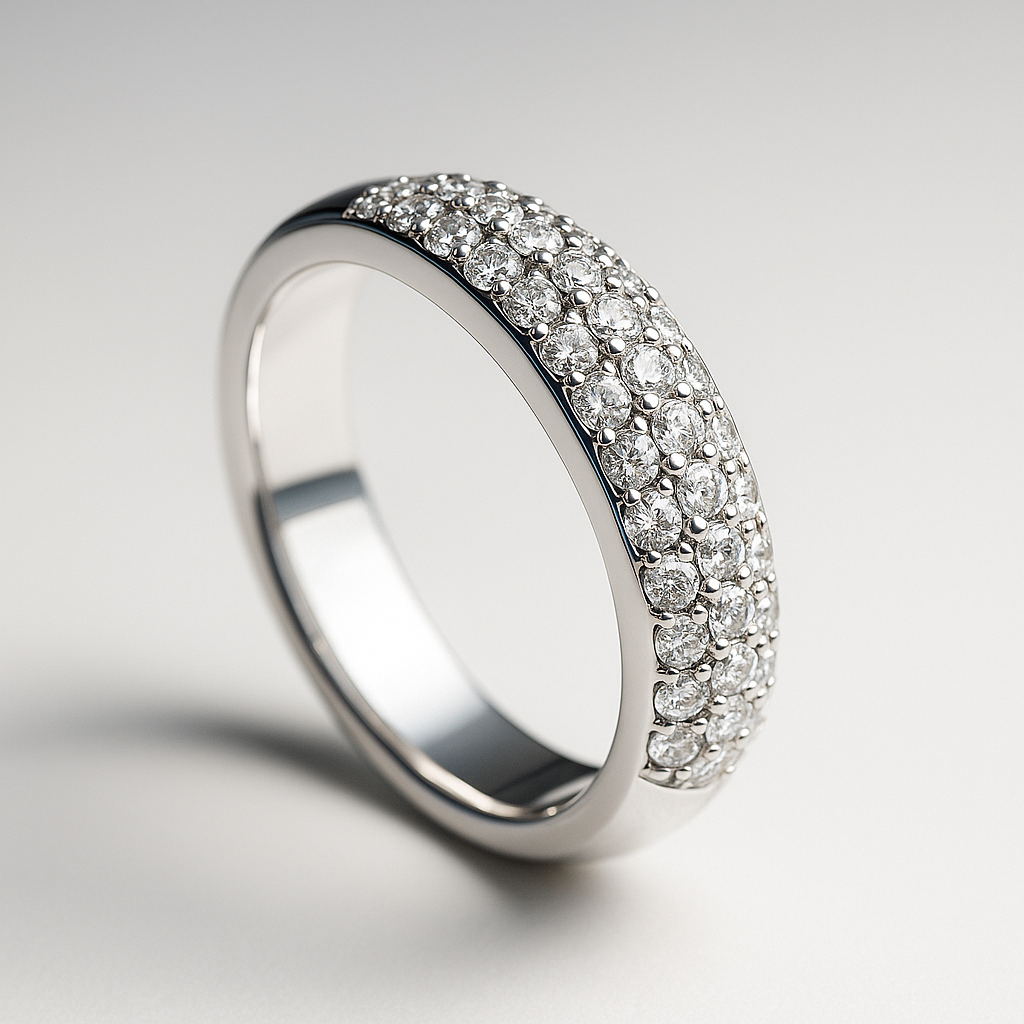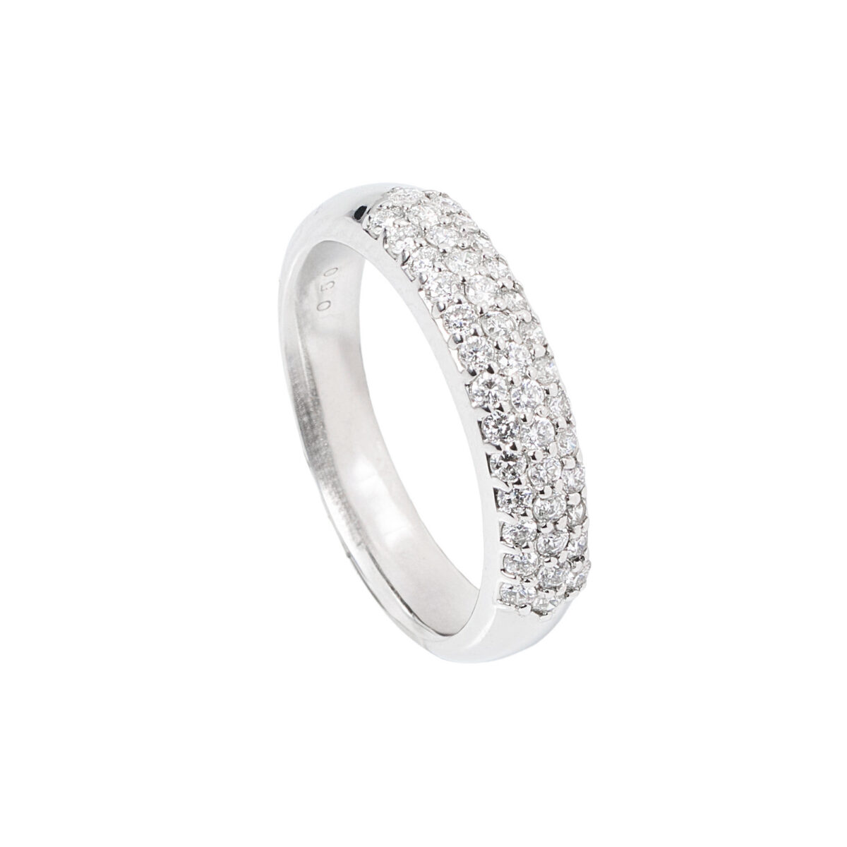 Anillo Oro Blanco 18k diseño medio cintillo con diamantes corte brillante engastados en Pave en total 0.50ct Talla 13