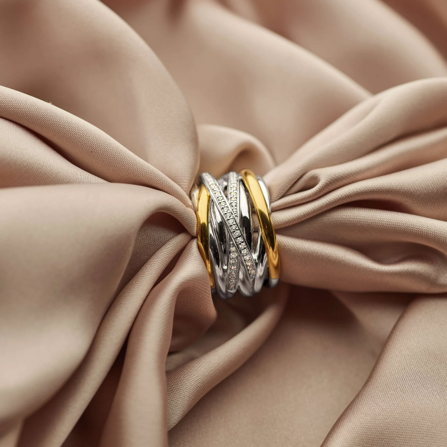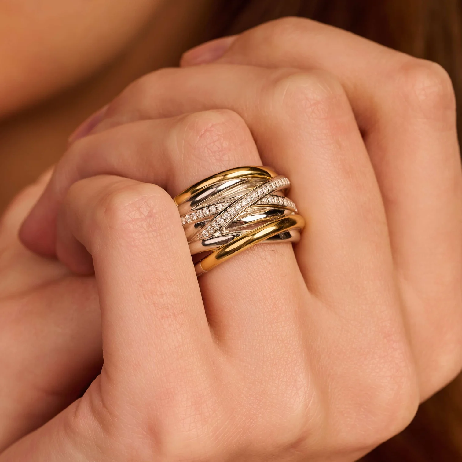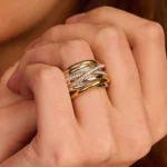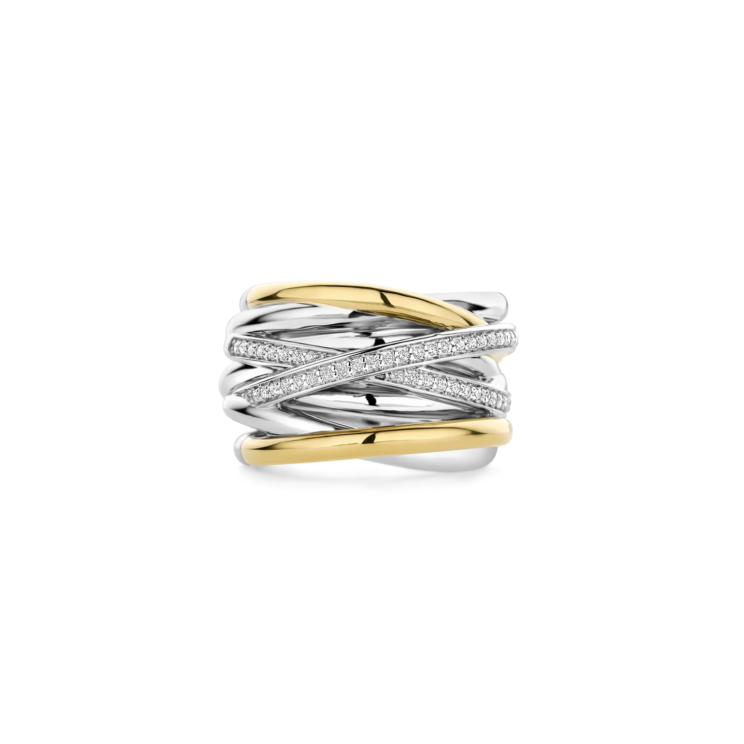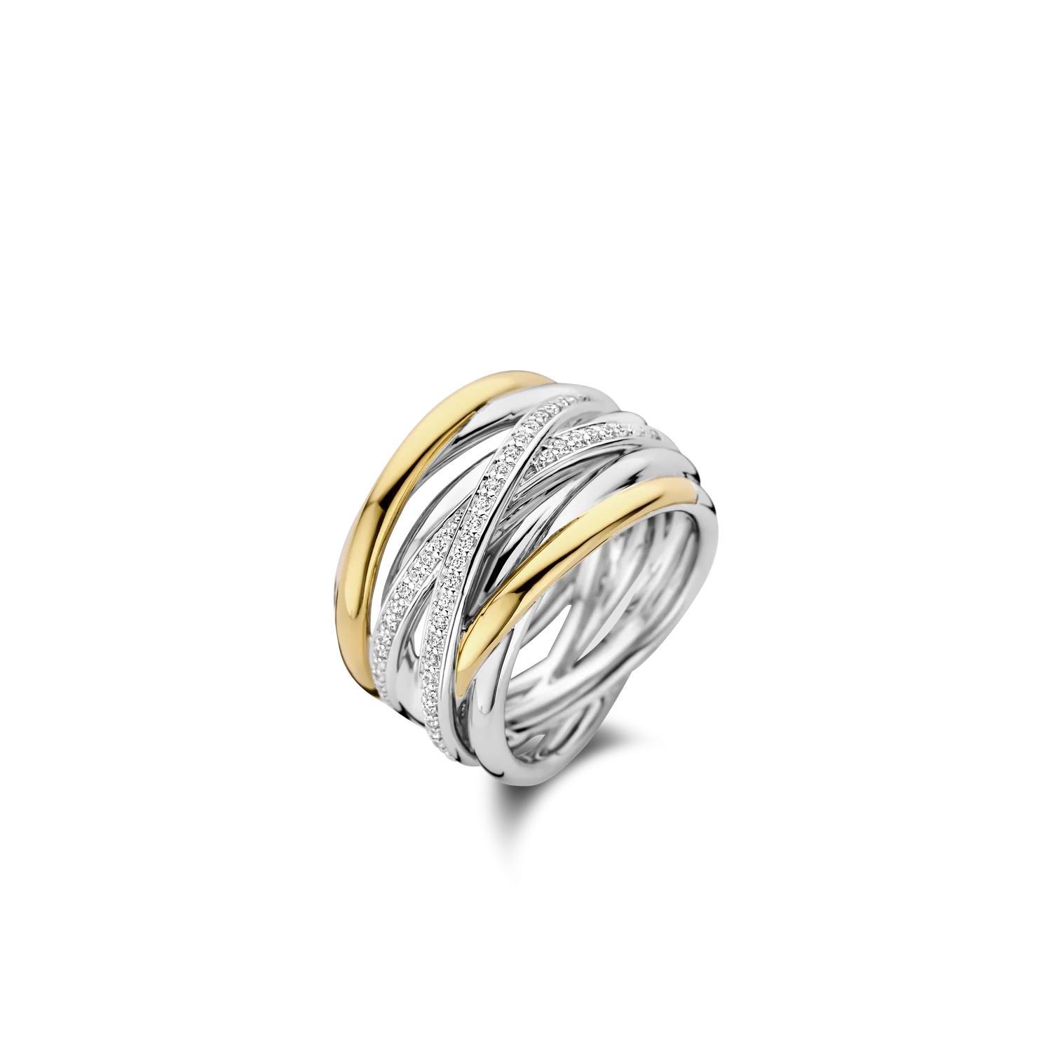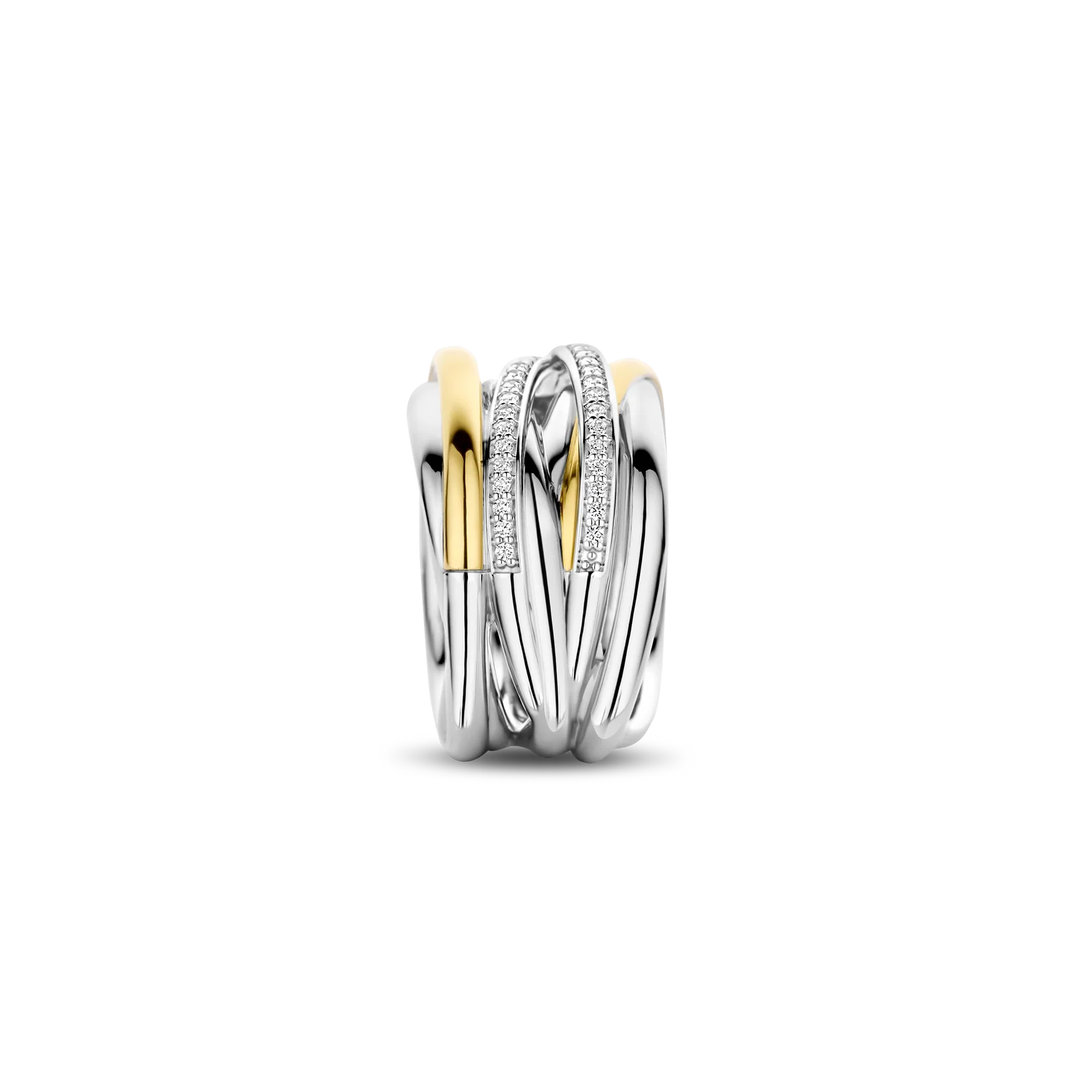 Anillo TI SENTO modelo 12067zy en plata esterlina con recubrimiento de platino y oro amarillo 18k con circonita cubica blanca engastada en pave. talla 14.