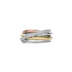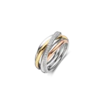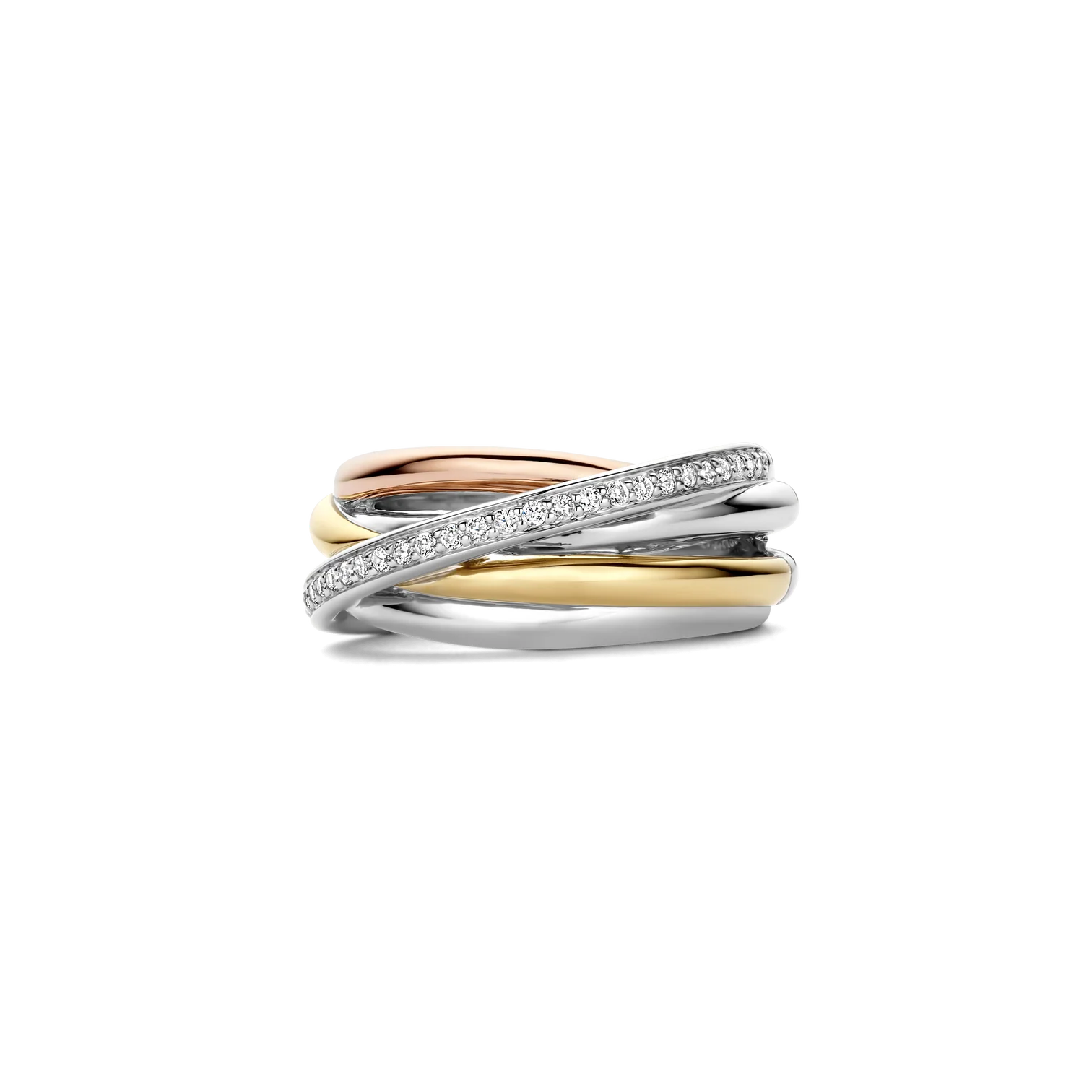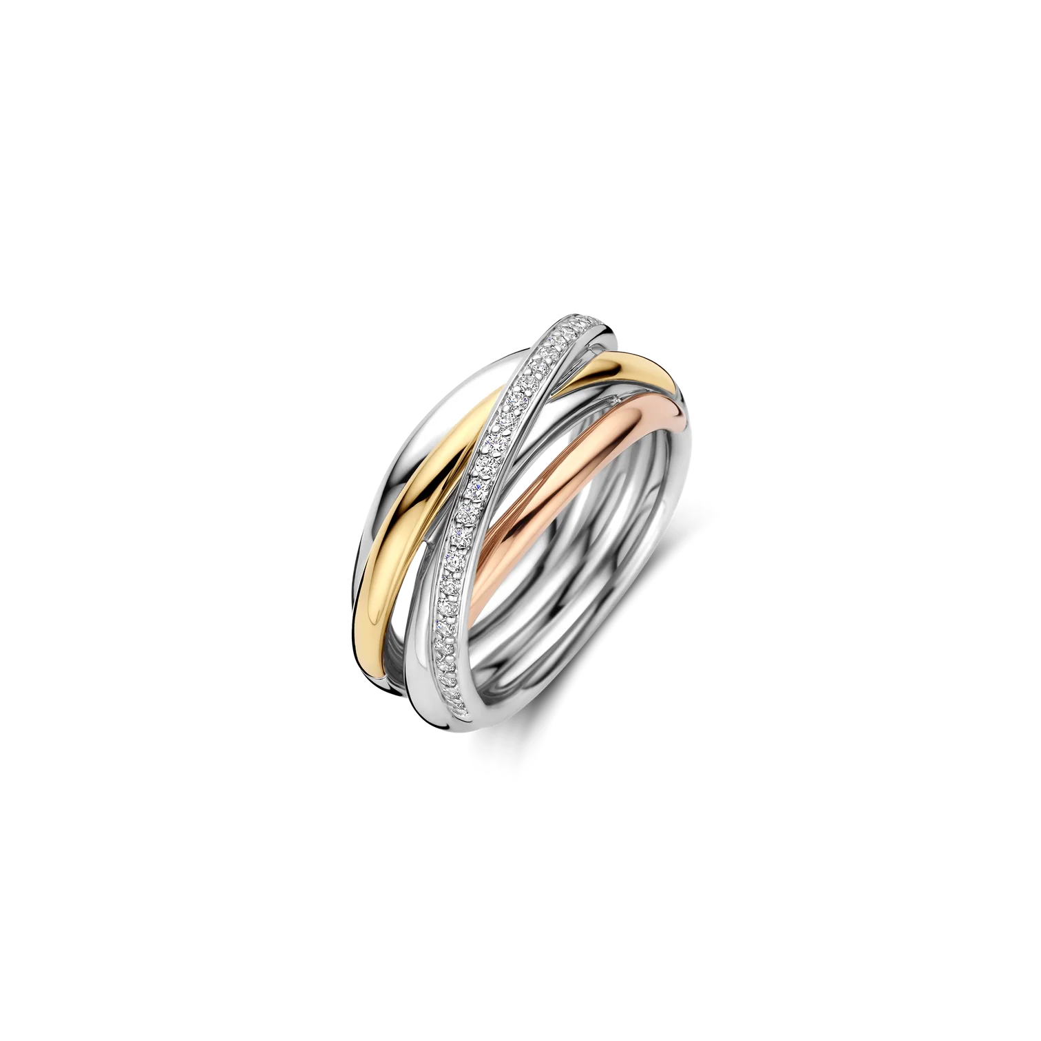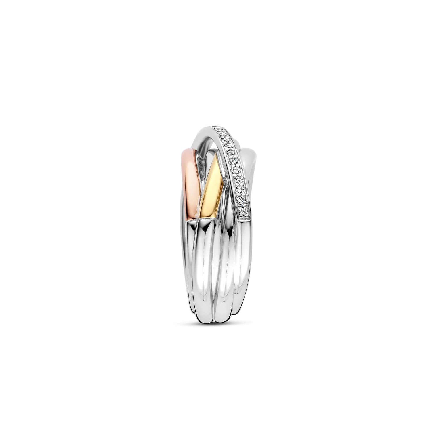 Anillo TI SENTO modelo 12318ZT de plata esterlina con recubrimiento en platino, oro amarillo 18k y oro rosado, con circonita cubica blanca. Talla 14.