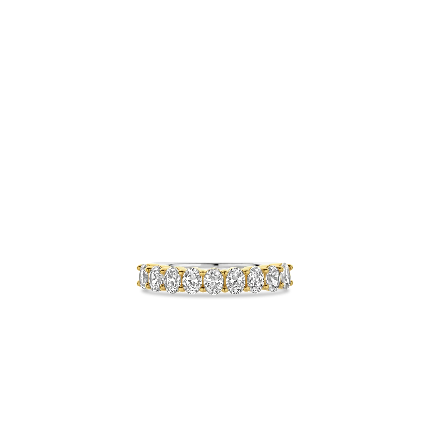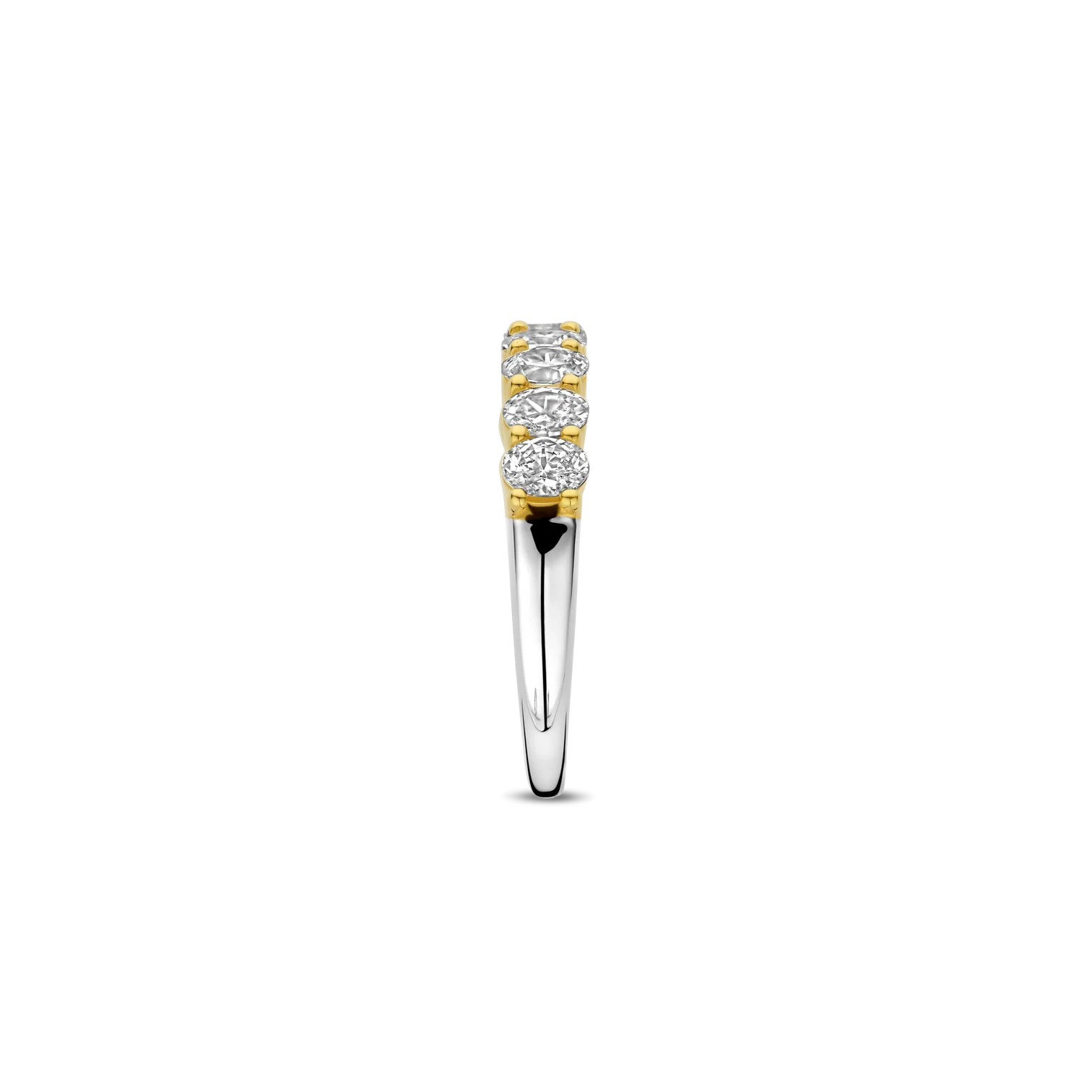 Anillo TI SENTO modelo 12339Zy de plata esterlina con recubrimiento de platino y oro amarillo 18k medio cintillo con circonita cubica blanca talla 14.