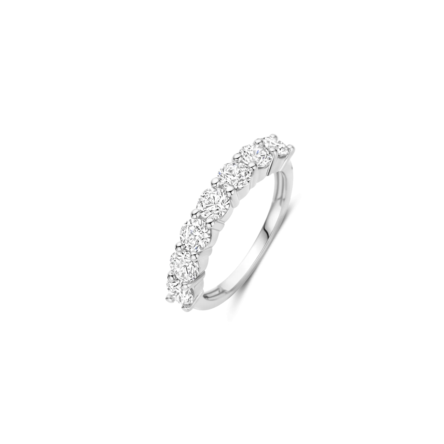 Anillo TI SENTO modelo 12380zI de plata esterlina con recubrimiento de platino con circonita cubica blanca engastadas en grifa. Talla 10.