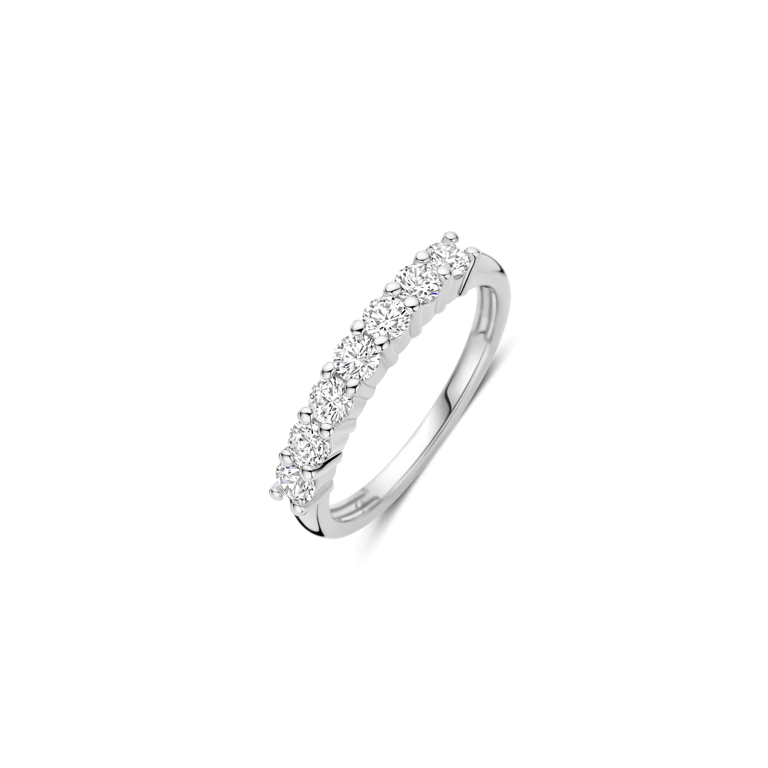 Anillo TI SENTO modelo 12381zi de plata esterlina con recubrimiento en platino estilo medio cintillo y circonita cubica blanca. Talla 14.