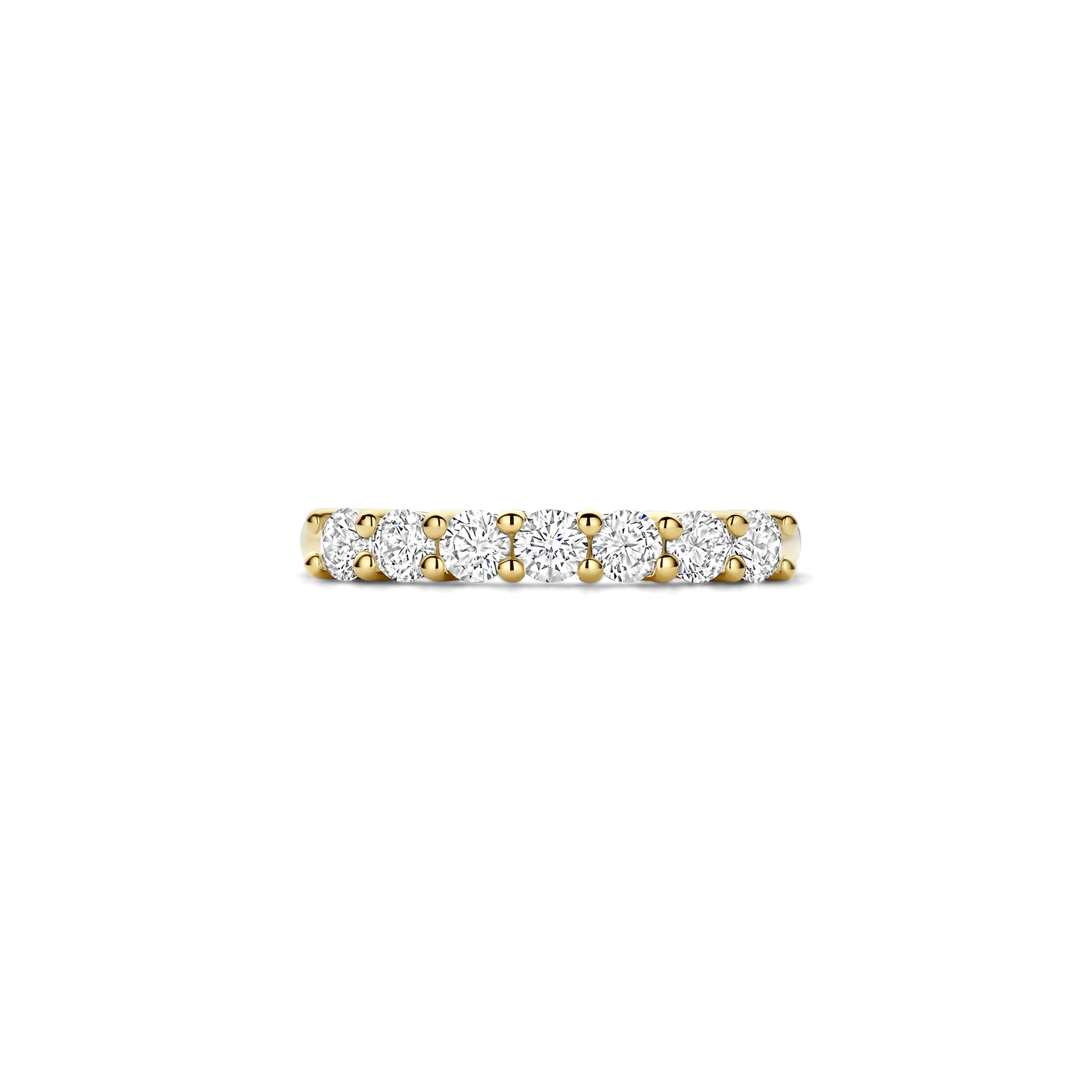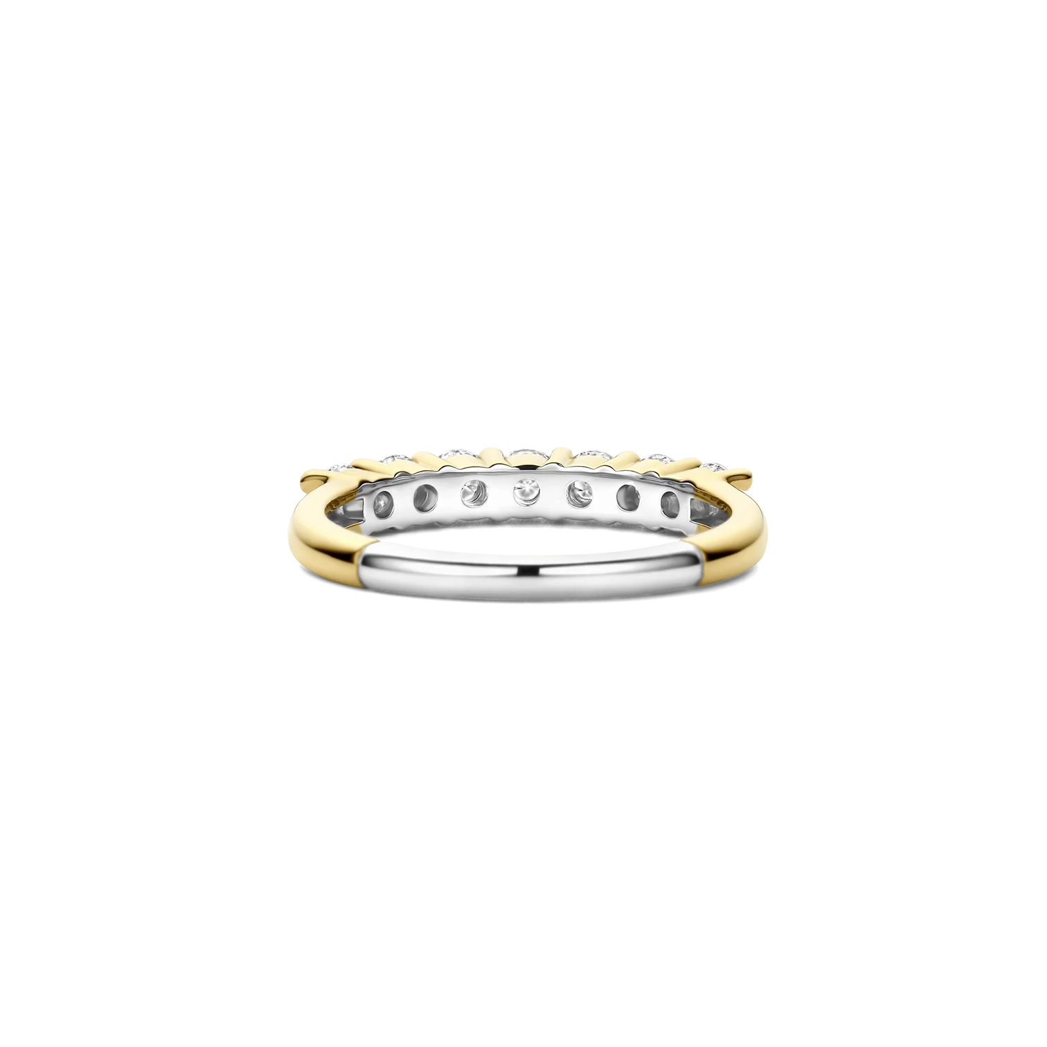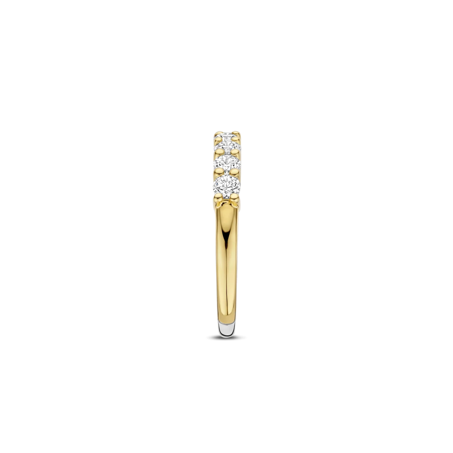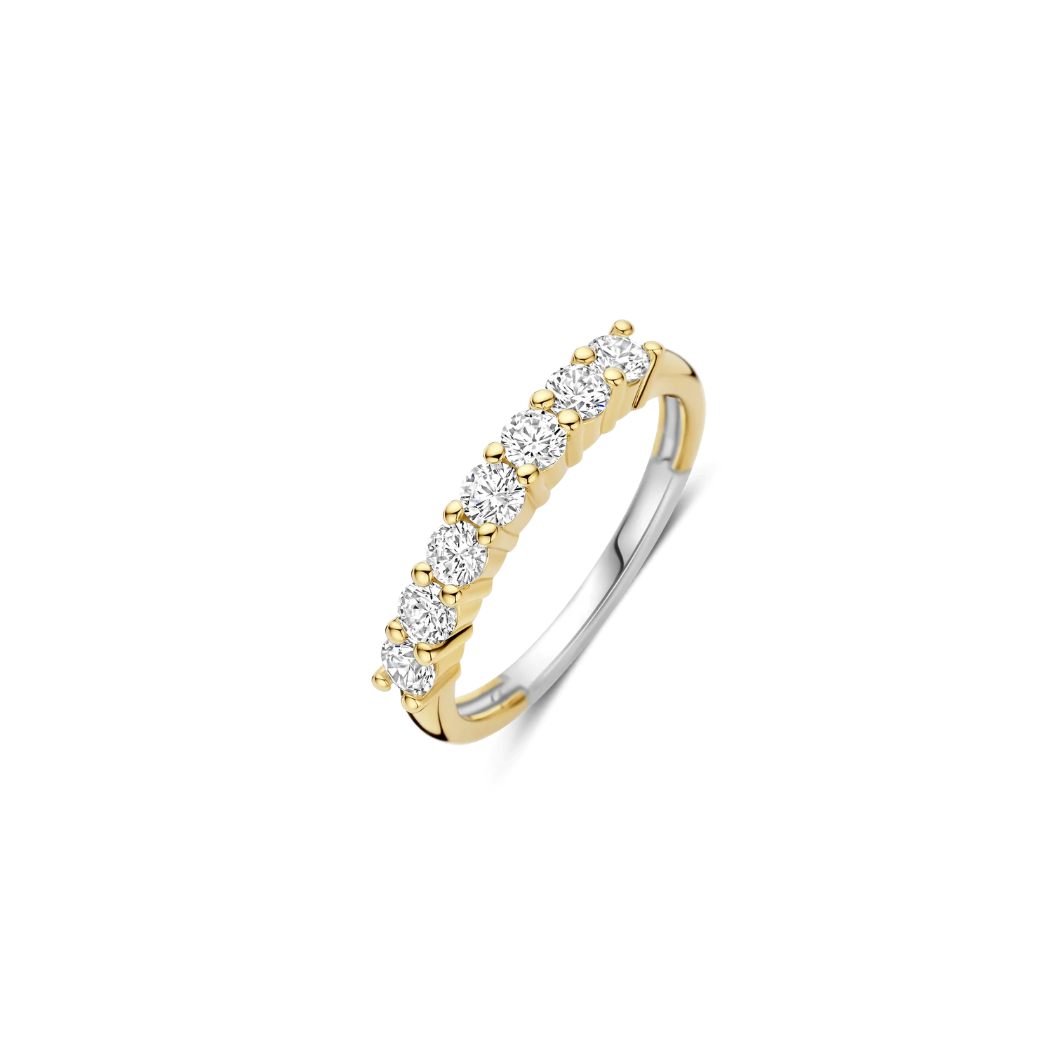 Anillo TI SENTO modelo 12381zy de plata esterlina con recubrimiento de oro 18k con circonita cubica engastadas en grifa estilo medio cintillo. Talla 18.