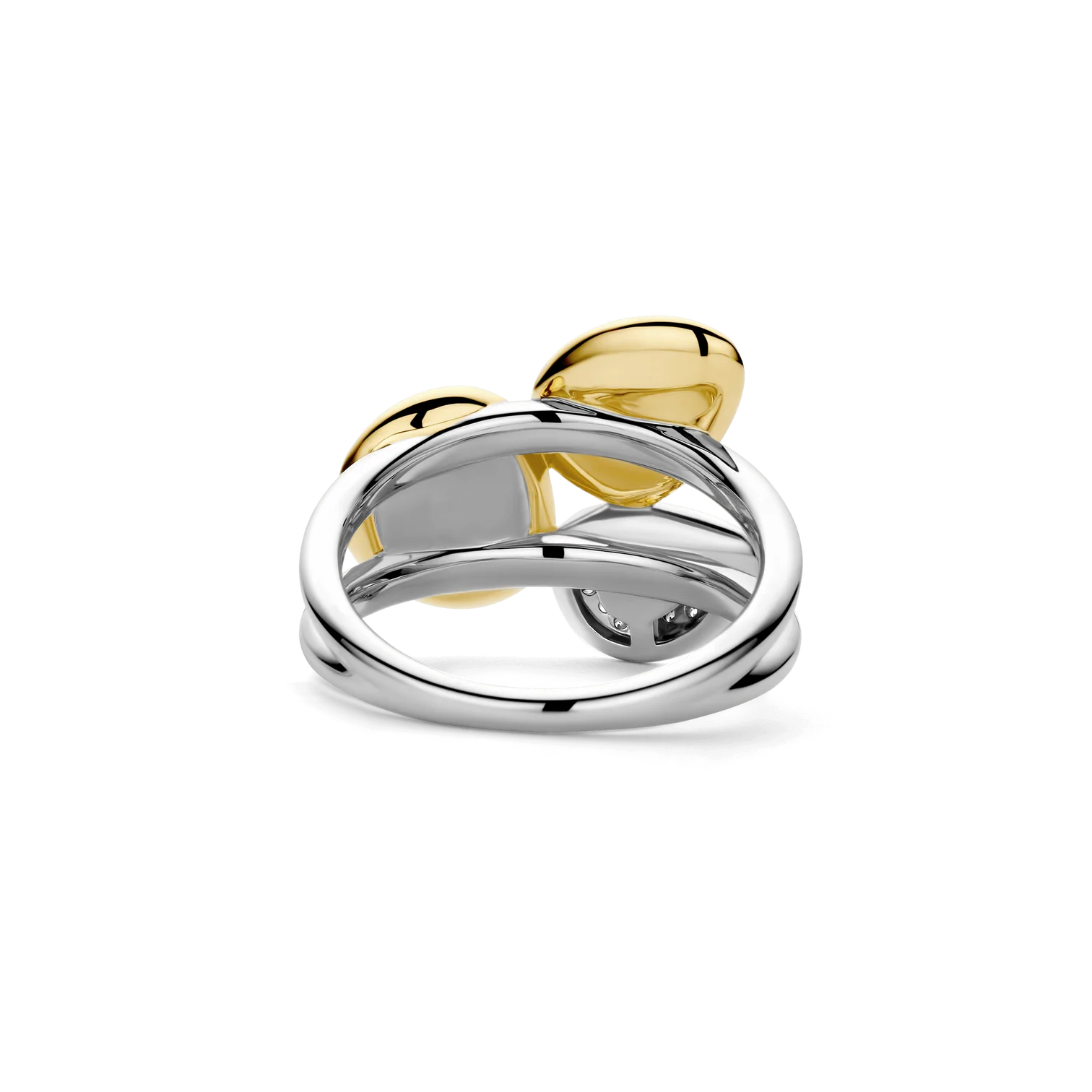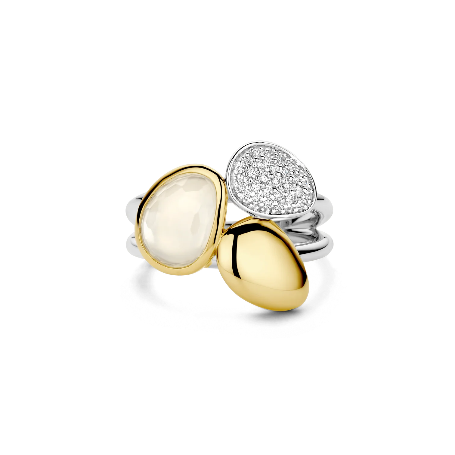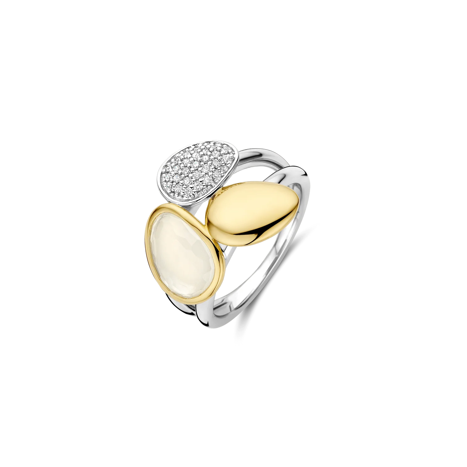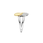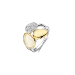 Anillo TI SENTO modelo 12387MW de plata esterlina con recubrimiento en oro amarillo 18k con circonita cubica blanca en pave y en blanco lechoso. Talla 12.