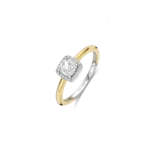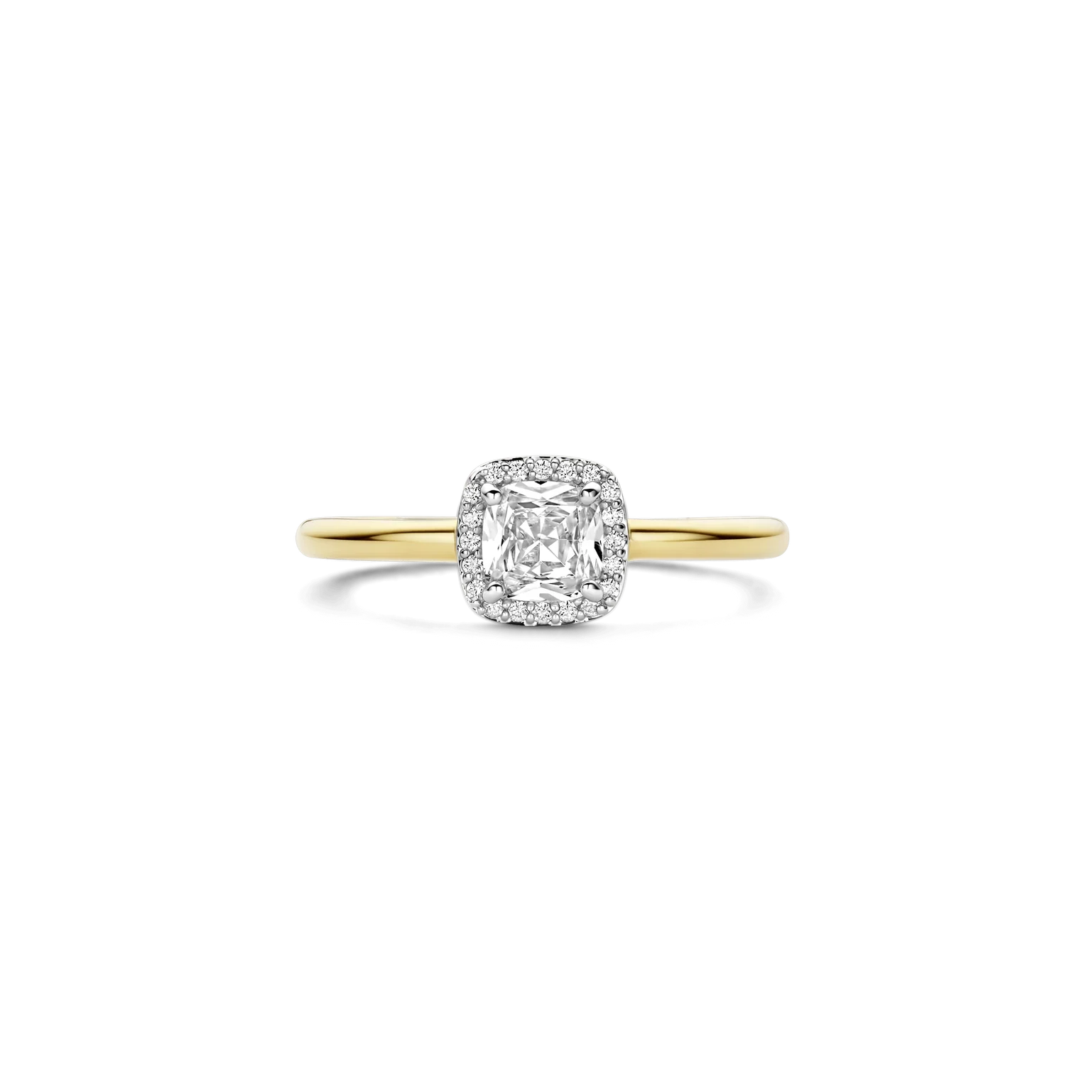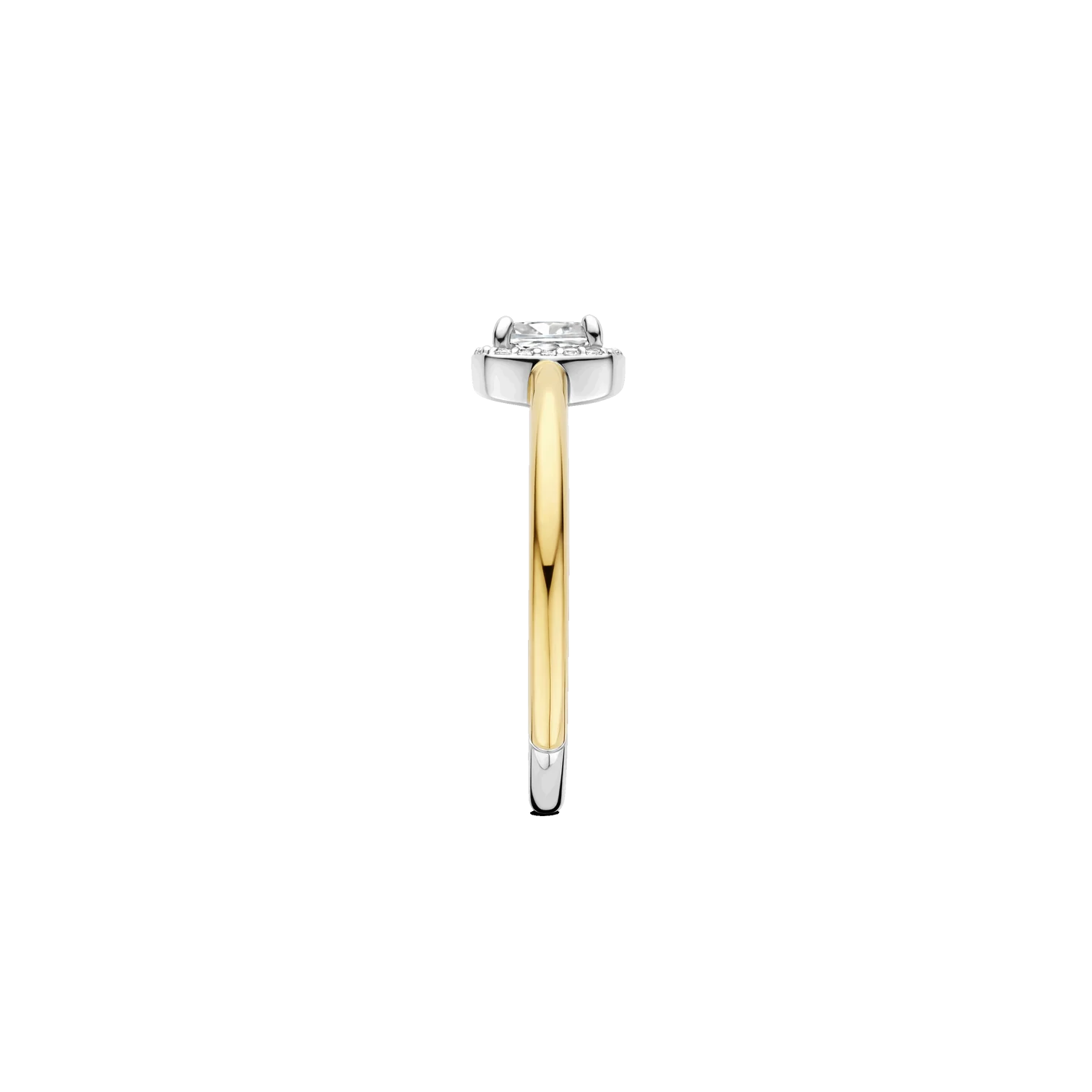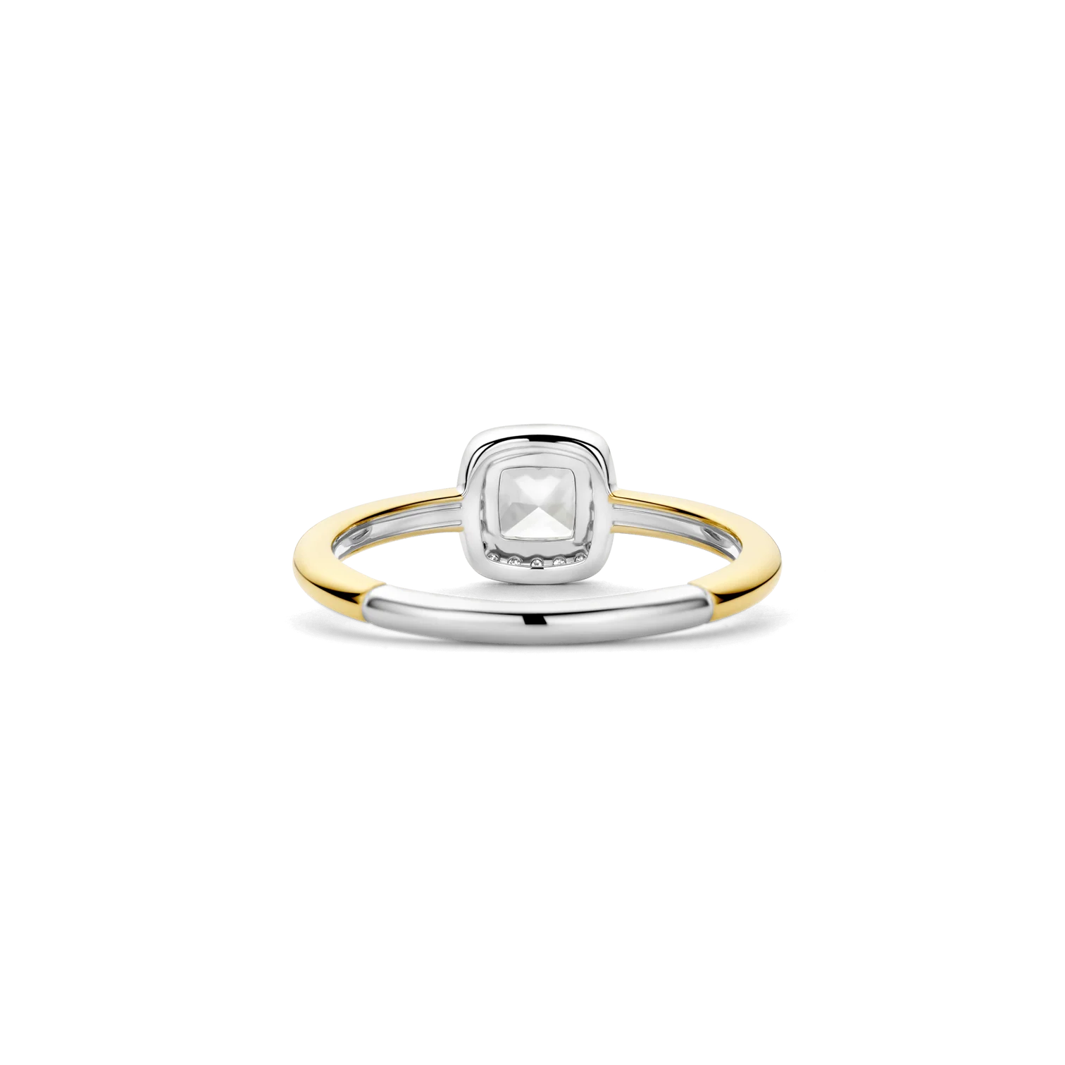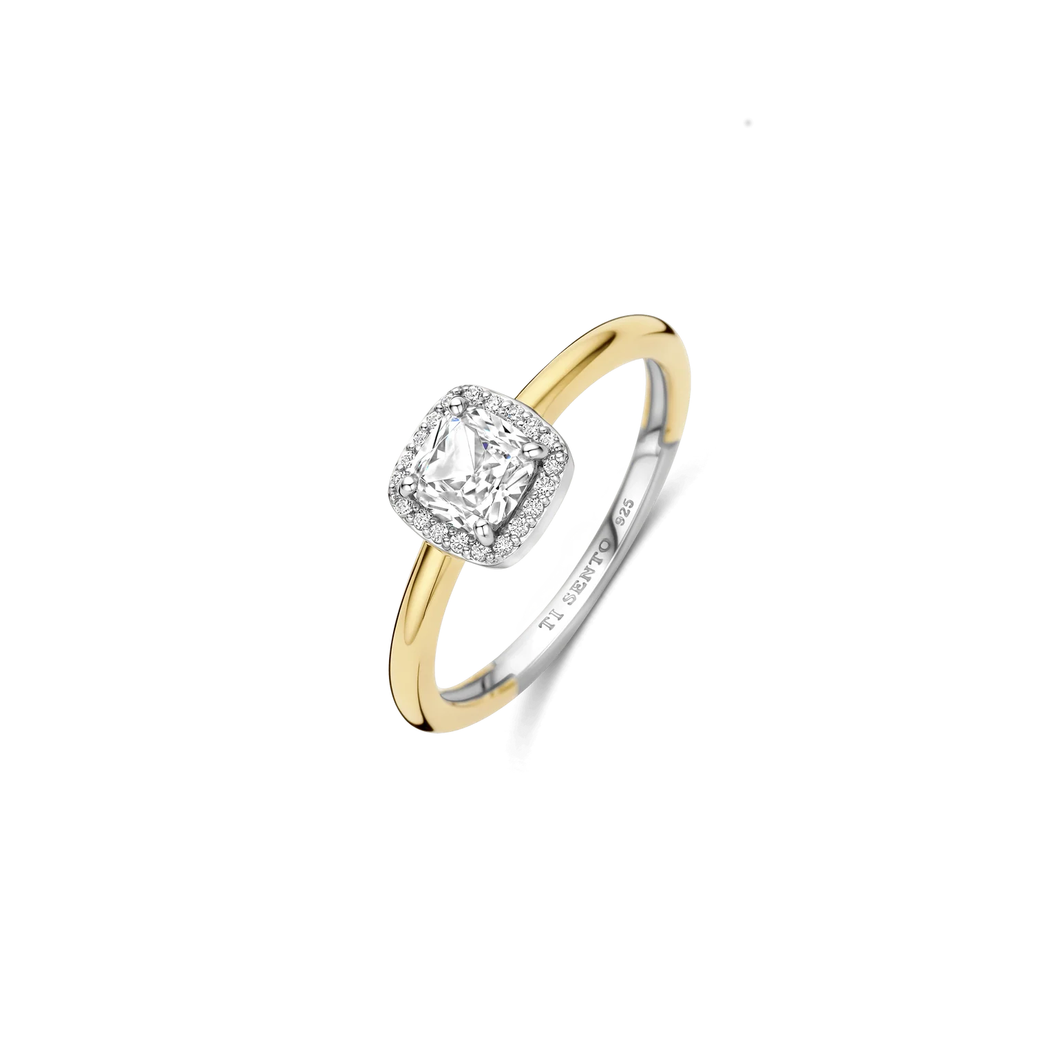 Anillo TI SENTO modelo 12388zy de plata esterlina con recubrimiento de oro amarillo 18k y circonita cubica blanca estilo solitario. Talla 12.