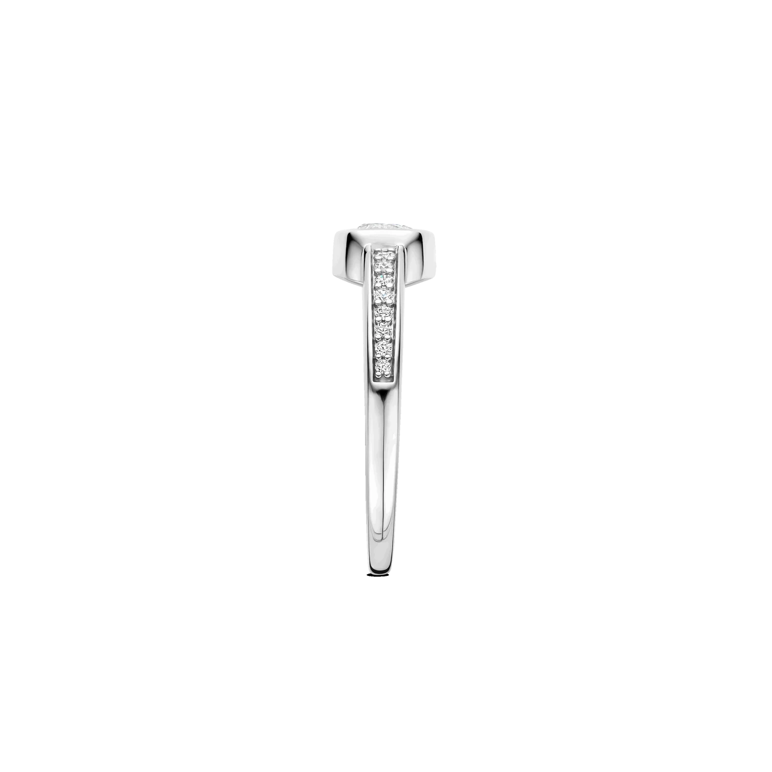 Anillo TI SENTO modelo 12390zi de plata esterlina con recubrimiento de platino y circonita cubica blanca engasta en bisel y pave. Talla 12.