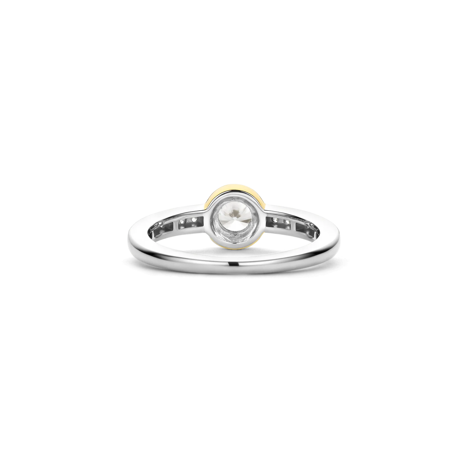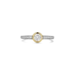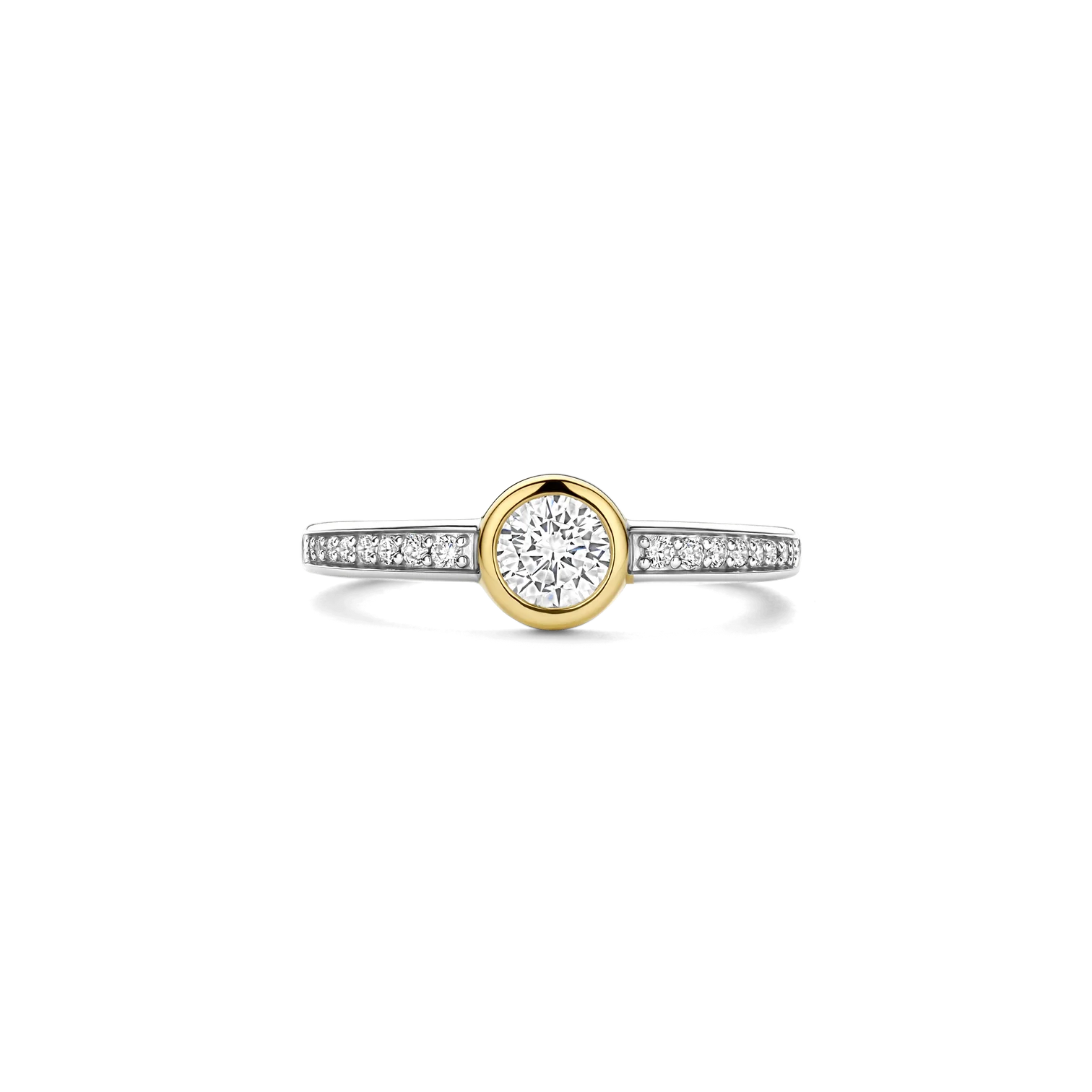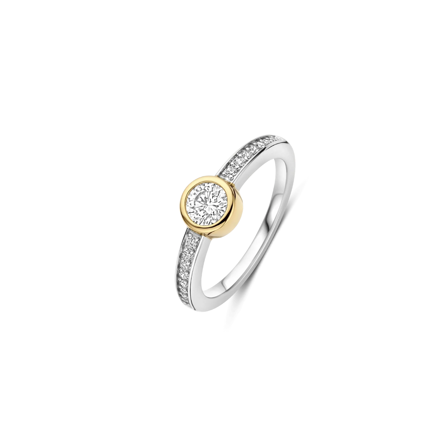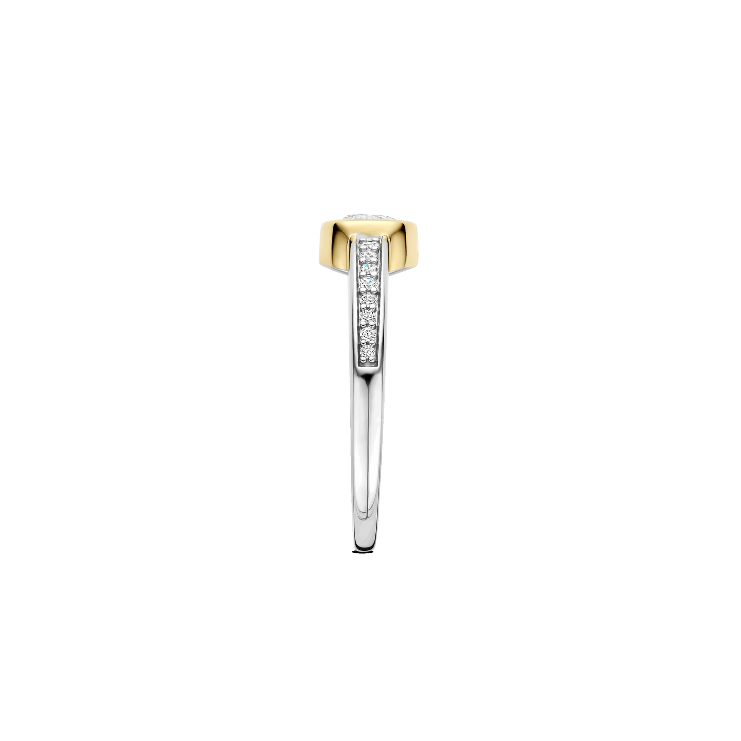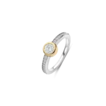 Anillo TI SENTO modelo 12390zy de plata esterlina con recubrimiento de oro 18k y circonita cubica blanca engasta en bisel y pave. Talla 14.