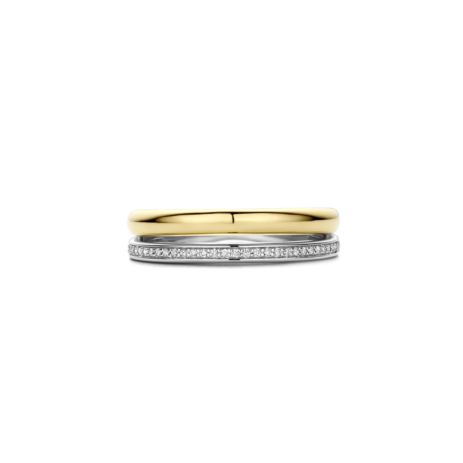 Anillo TI SENTO modelo 12393zy de plata esterlina con recubrimiento de platino y oro 18k con circonita cubica blanca engastada en pave. talla 14.