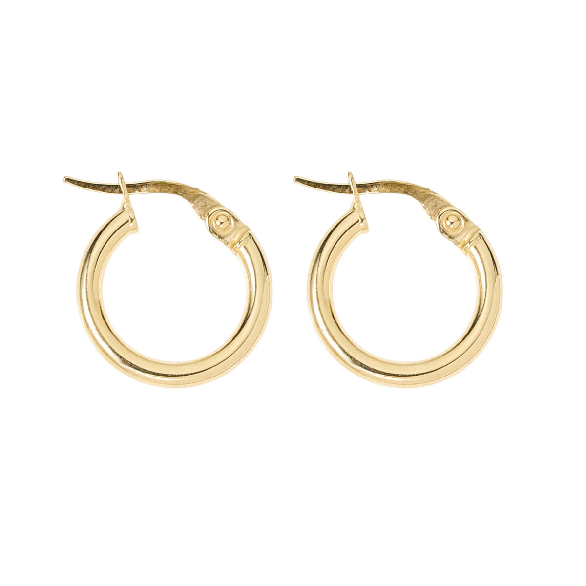 Aros estilo Argolla de oro amarillo 18k diseño de tubo con cierre italiano de 1,5 centimetros de diámetro. Lisas.