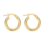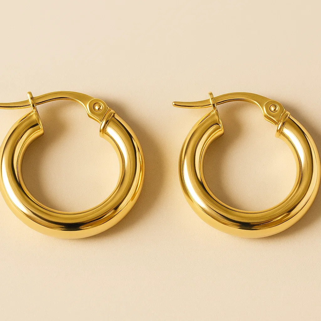 Aros de oro amarillo 18k con diseño de argolla estilo tubo lisas con un diámetro de 20 milimetros con cierre Italiano.