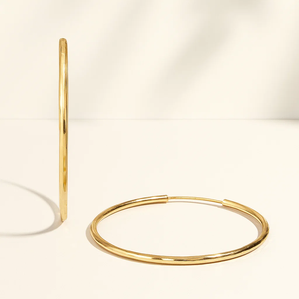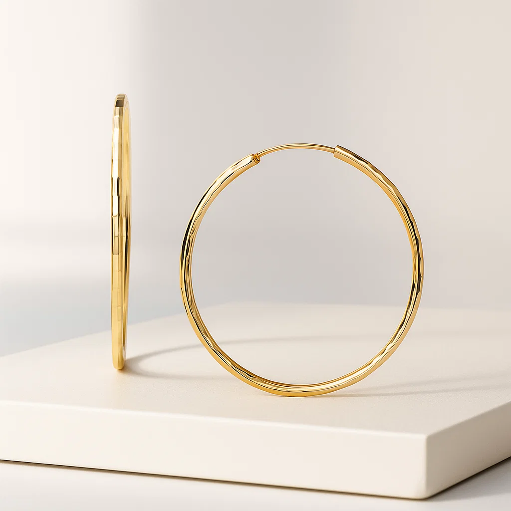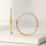Aros de plata esterlina con recubrimiento en oro amarillo 18k con diseño de argollas delgadas diamantadas con diámetro de 55mm