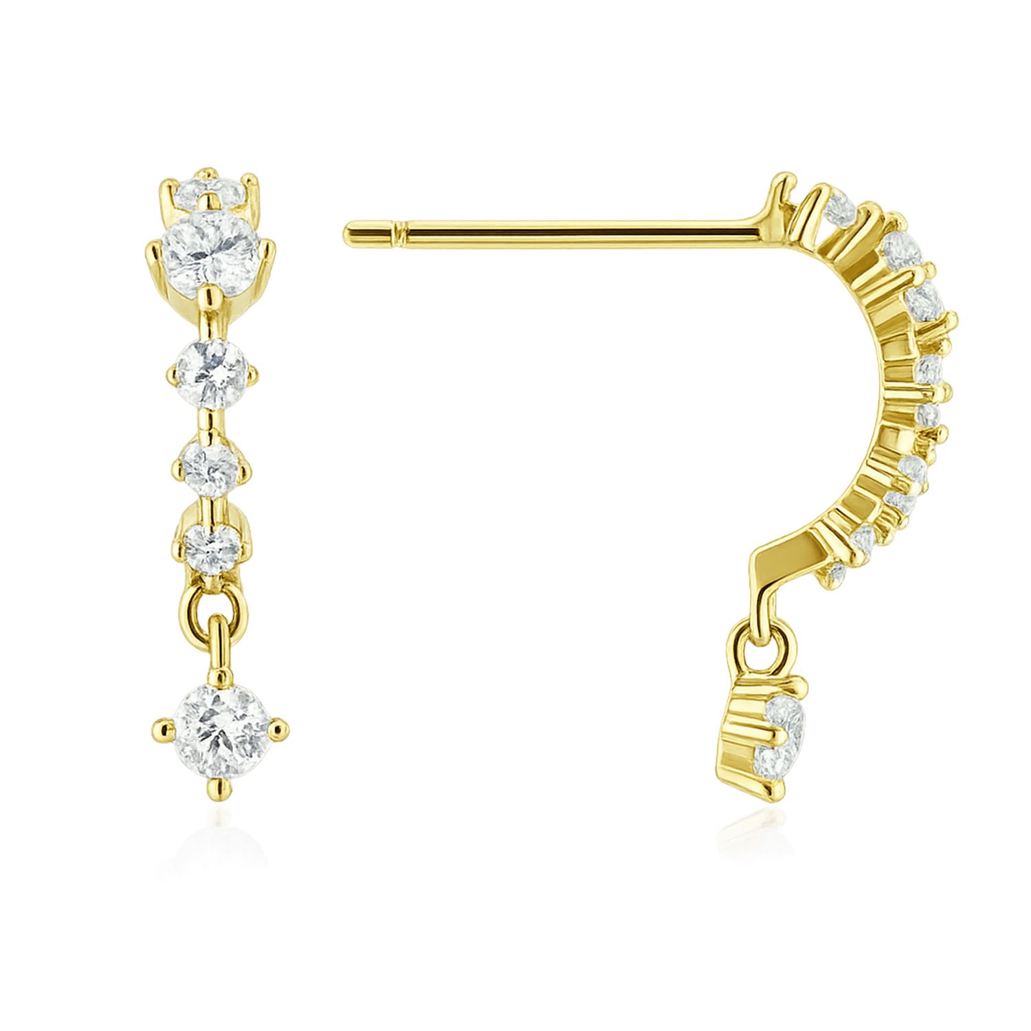 Aros largos de plata 926 con terminación oro amarillo 18k y circonita suiza. Miden 15 milímetros.