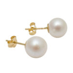 Aros perla cultivada en oro amarillo 18 kilates de 7,5 milímetros con tornillo.