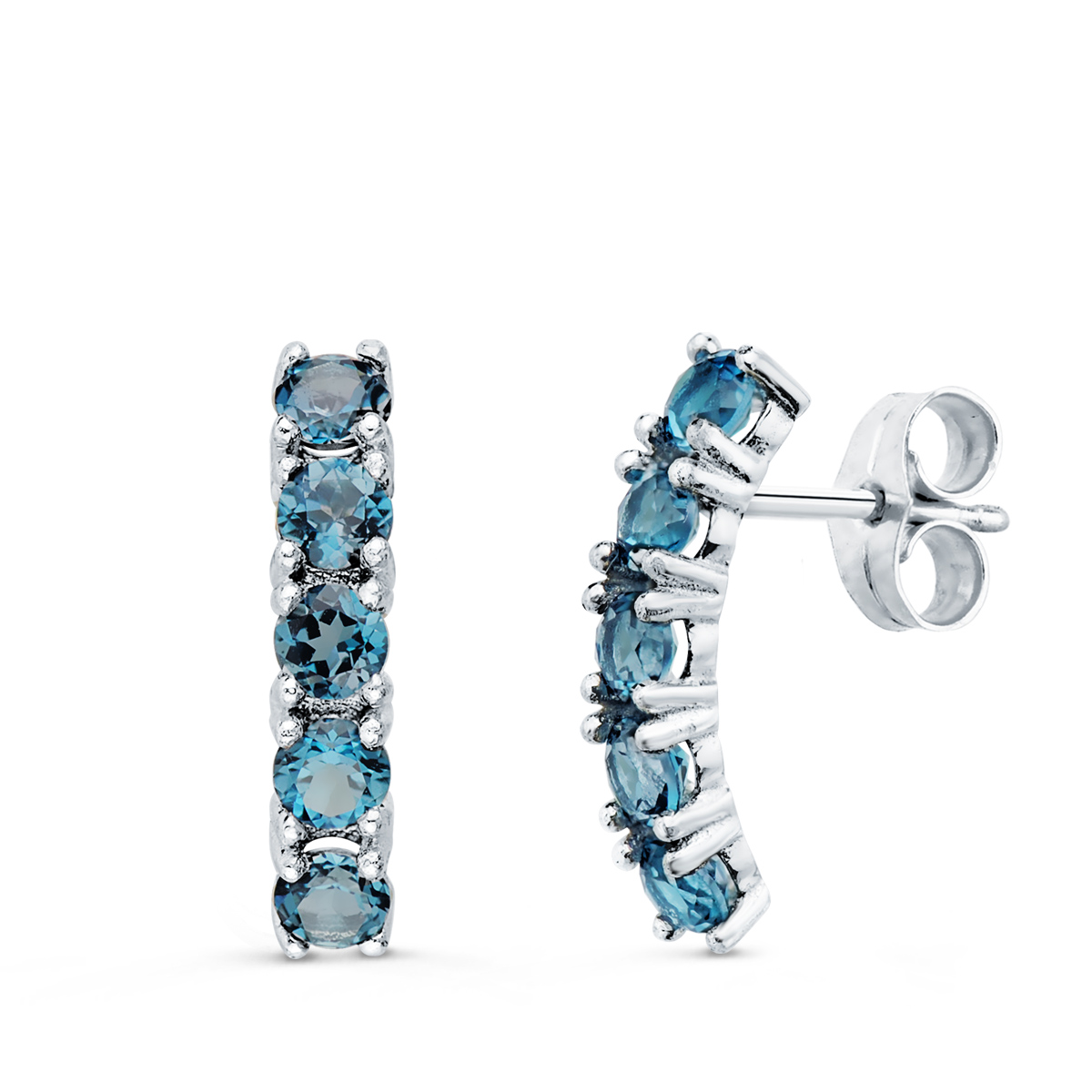 Aros en oro blanco de 18 kilates y topacios azules