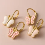 AROS ARGOLLA BROCHE MARIPOSA ESMALTE ROSA