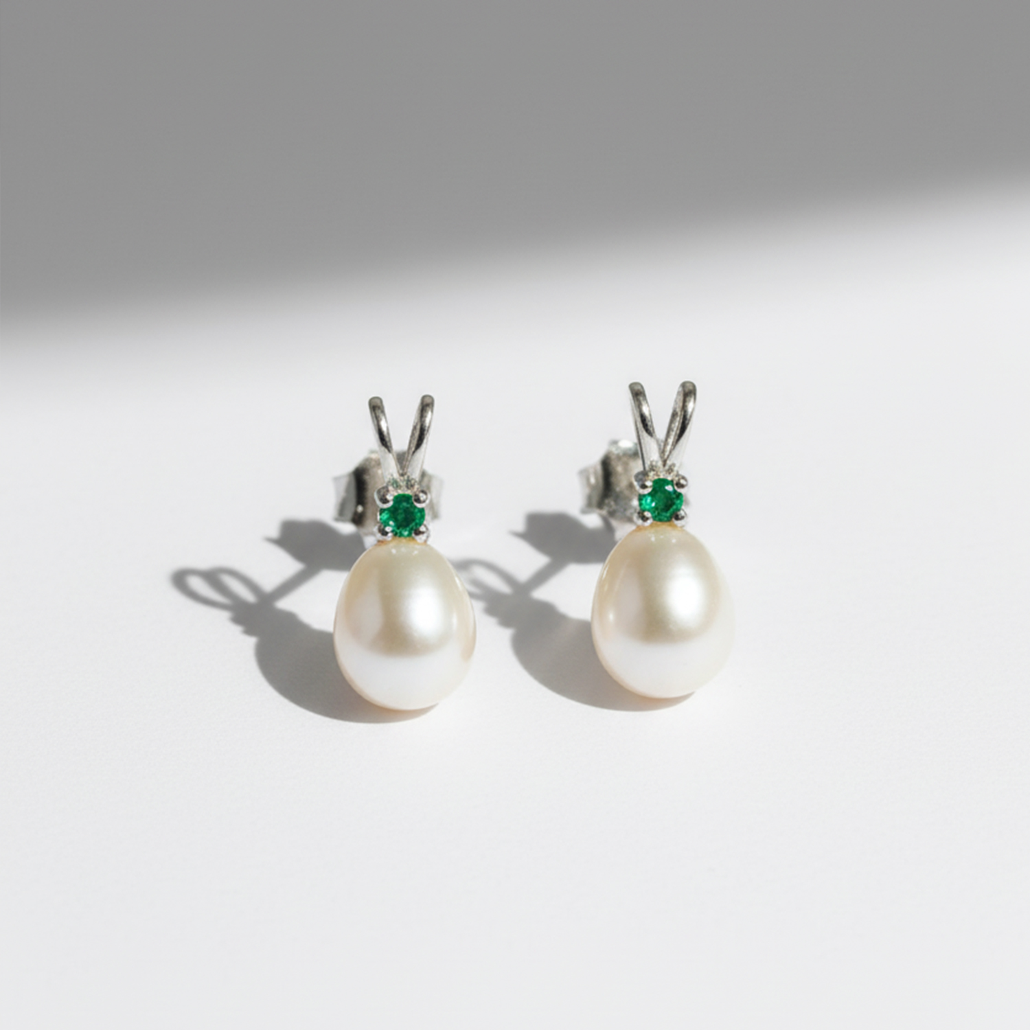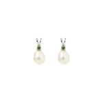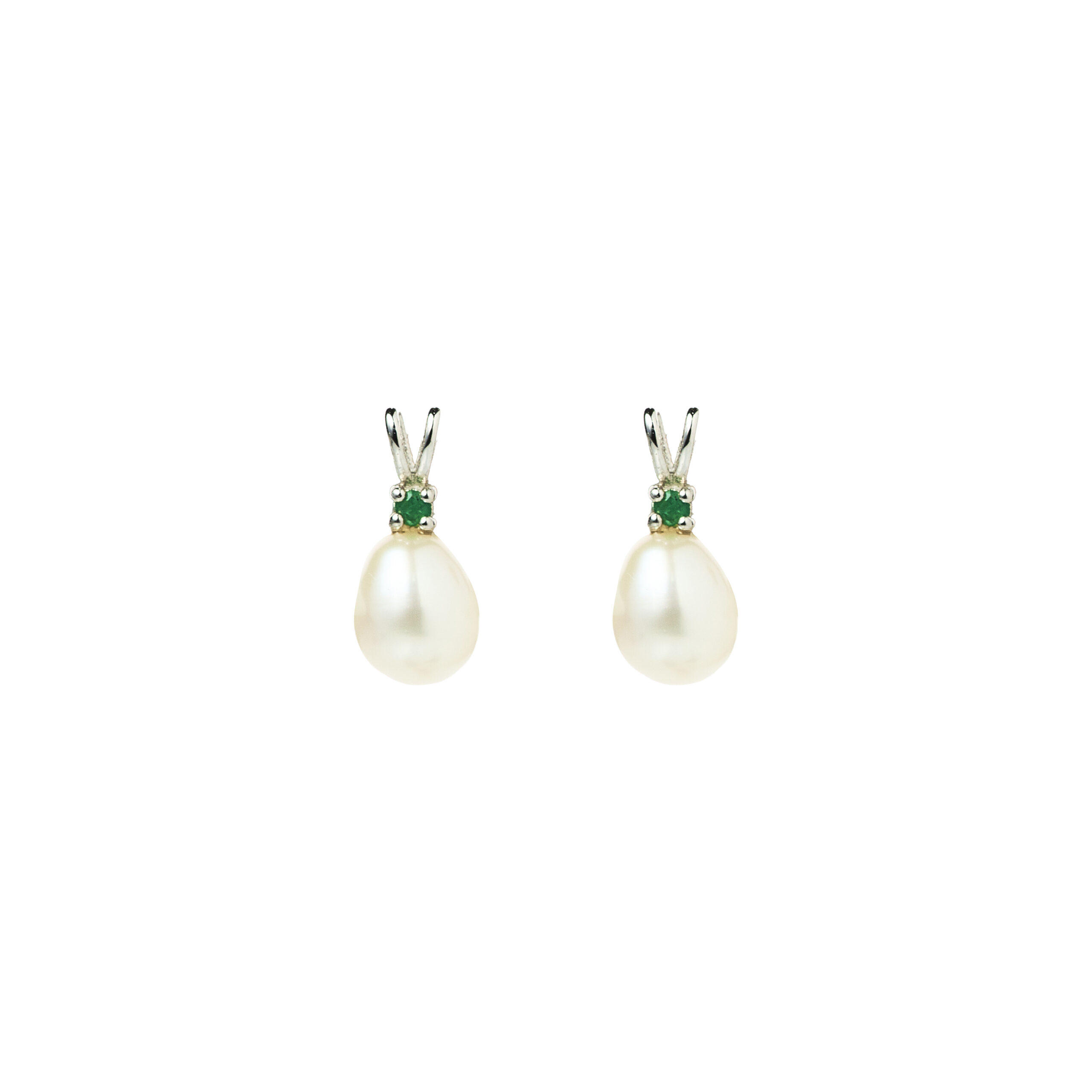 Aros de Plata esterlina 925 con esmeralda natural engastados en grifa con perla natural en forma de gota de 6mm. Medidas: 0,8cm x 0,6cm