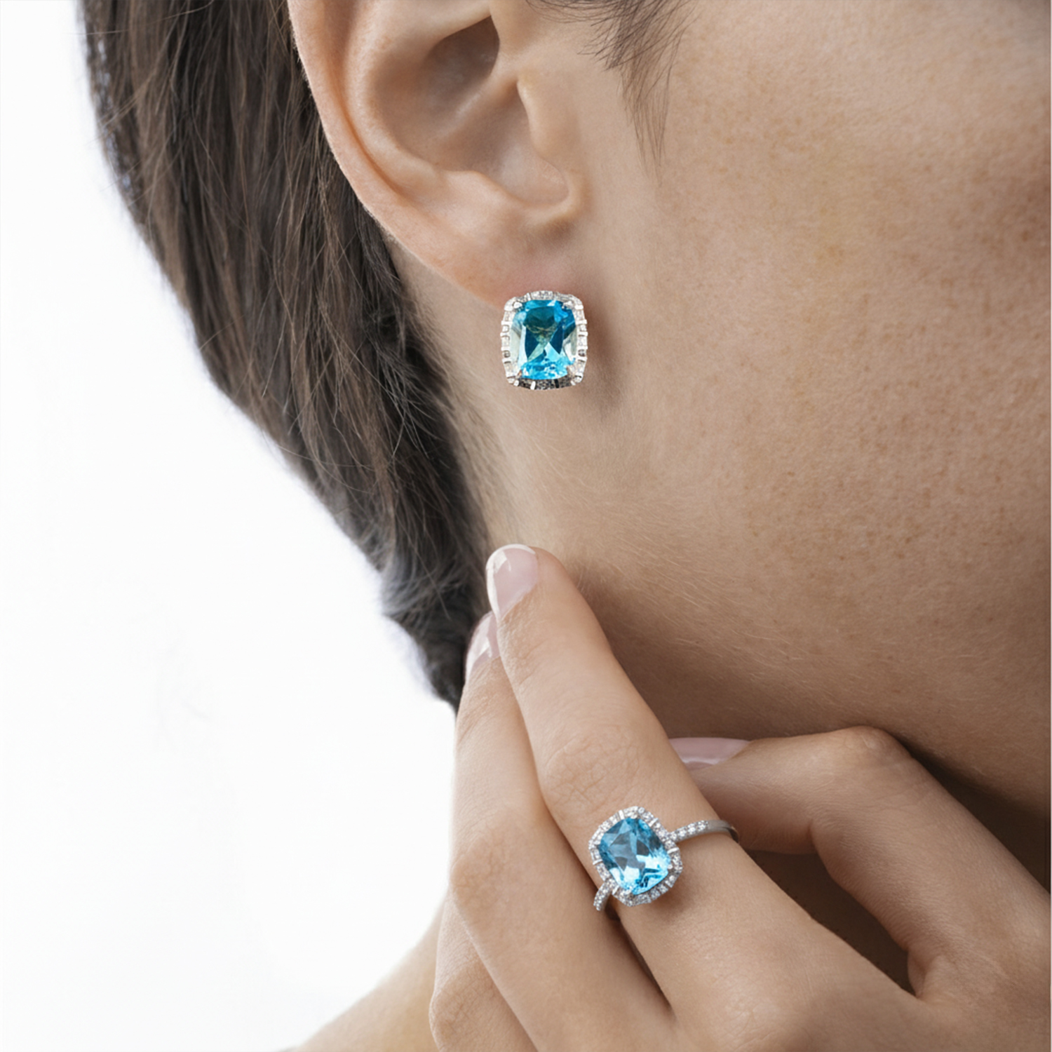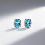 AROS DE TOPACIO AZUL NATURAL AFACETADO CON UN HALO DE CIRCON $239.000