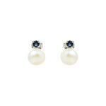 Aros de plata esterlina 925 con un  zafiro natural corte redondo  engastados en grifa con perla natural de 6mm. Medidas 1cm x 0,6cm