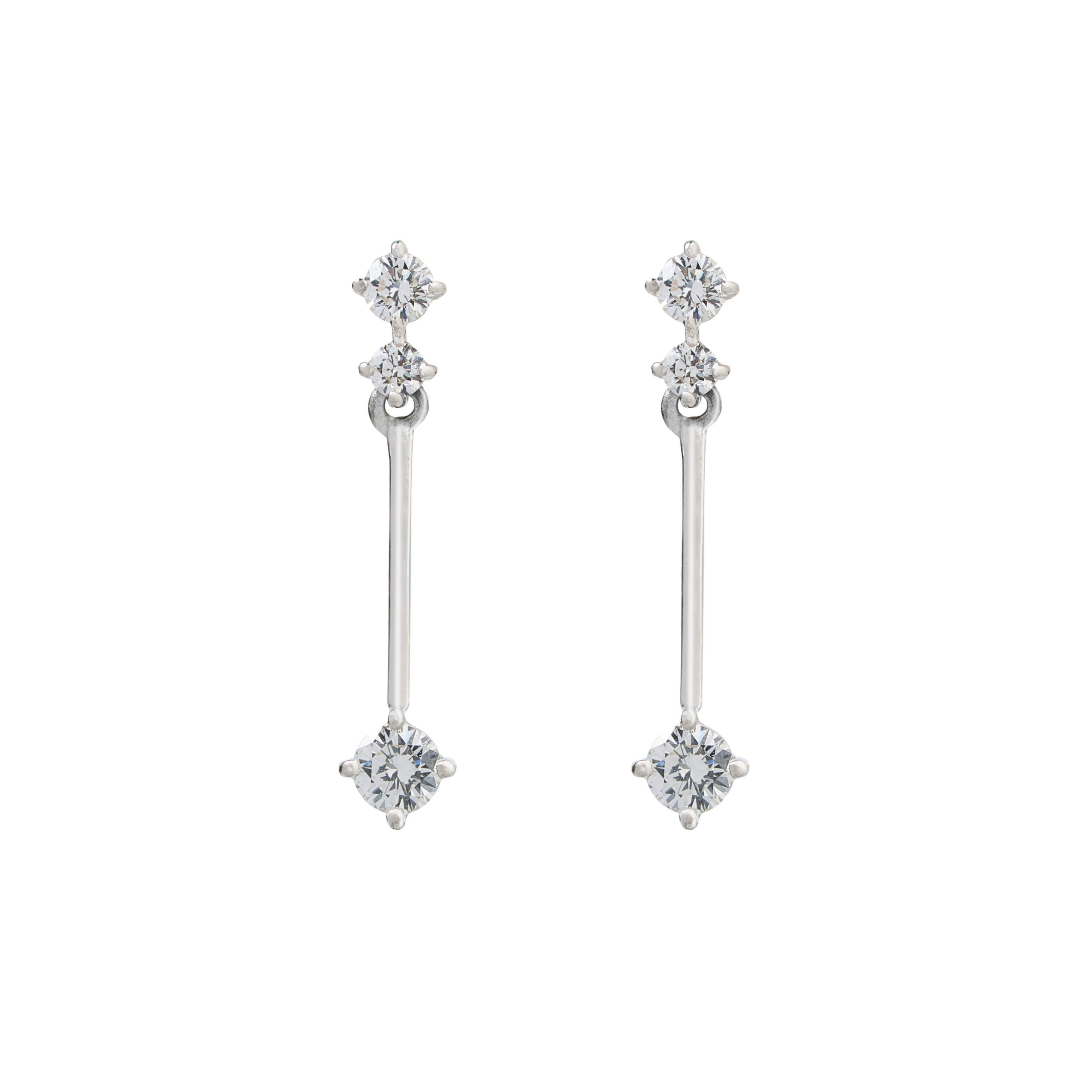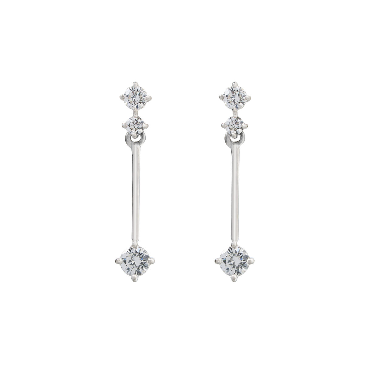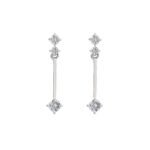 Aros de Platino con dos diamantes corte brillante engastados en grifa, un palito de platino y un diamante corte brillante al final del aro 0.36ct en total. Largo 19mm