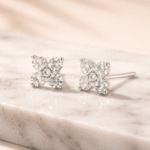 Aros Flor de Diamante Oro Blanco 18k