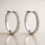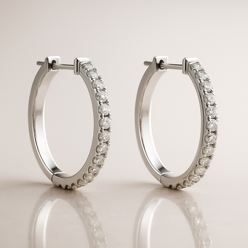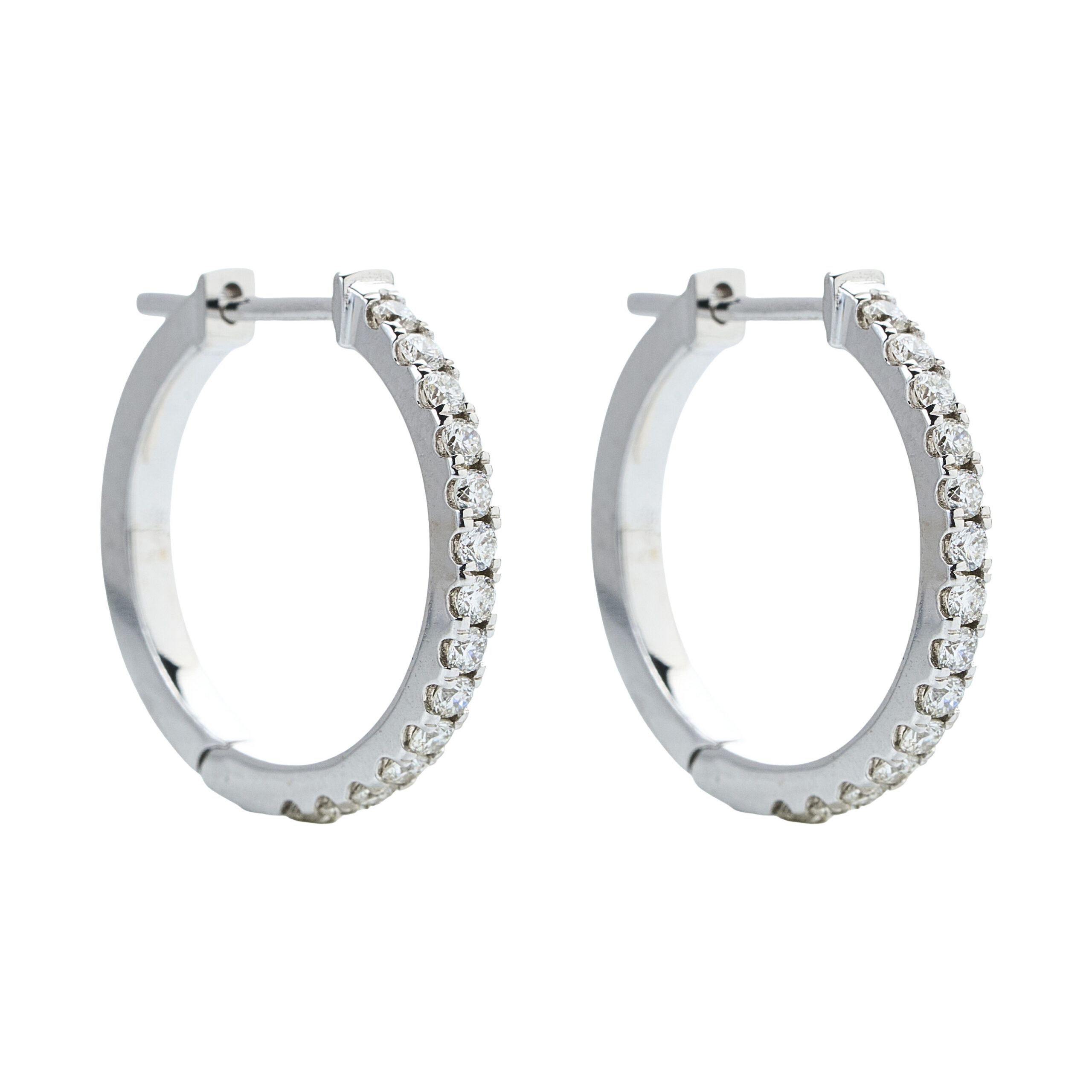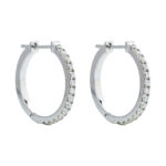 Aros de Oro blanco 18k estilo argolla con diamantes corte brillante de 0.43ct en total engastadas en grifa. 18mm diámetro.