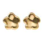 Aros de plata esterlina 925 con recubrimiento de oro amarillo 18k con diseño de flor pétalos redondeados y cierre de tornillo.