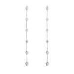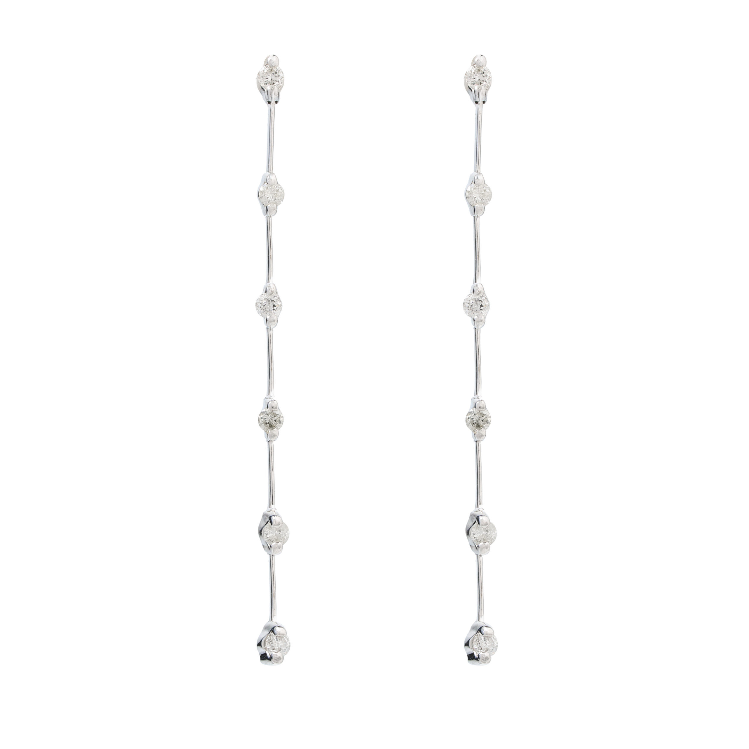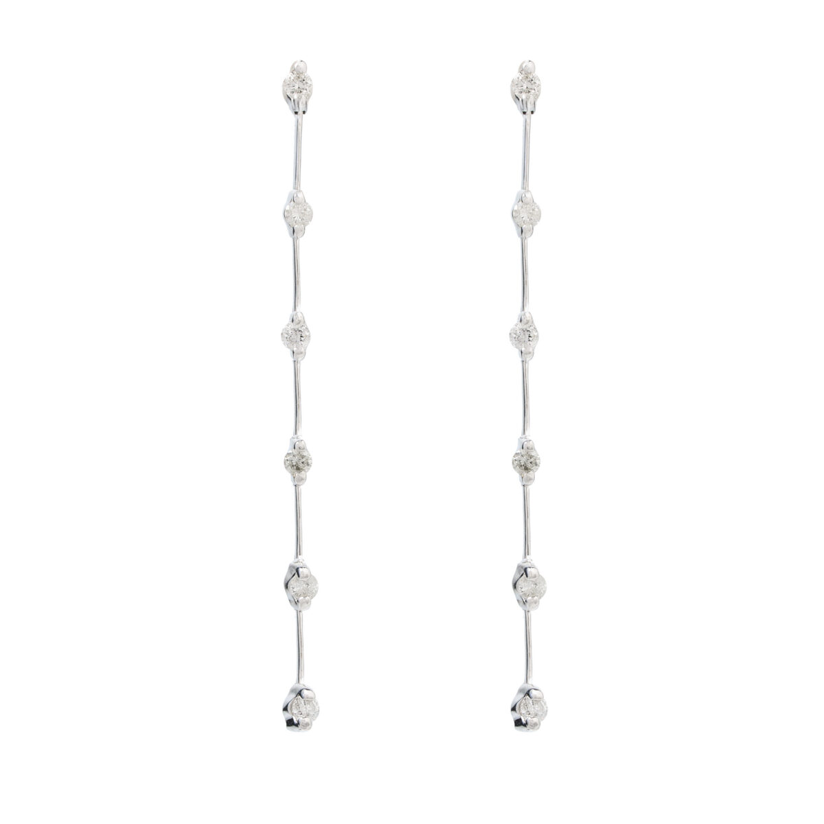Aros de oro blanco 18k, linea de diamantes engastados en grifa entre linea de metal, 0.50ct en total, con un largo de 50mm