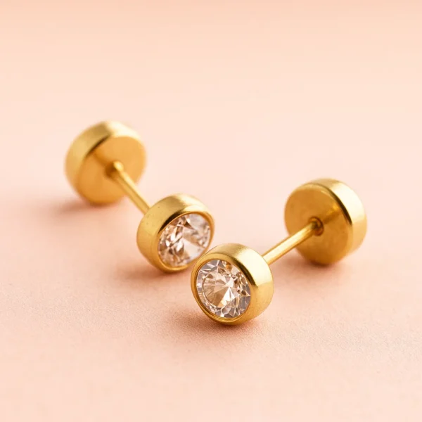Aros Bisel Recien Nacida Oro 18Kt Y Circon