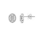 Aros de Oro Blanco 18k, estilo Sophia ovalado con diamantes corte brillante engastados en pave con un halo de brillantes 0.55ct en total. Cierre a presión.