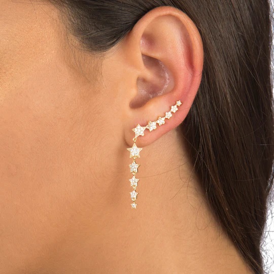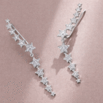 Aros Doble Barrita Estrellada En Plata – 55Mm