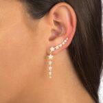 Aros largos en plata 925 con circones colgantes y barrita deslizante. Miden 55 milímetros.