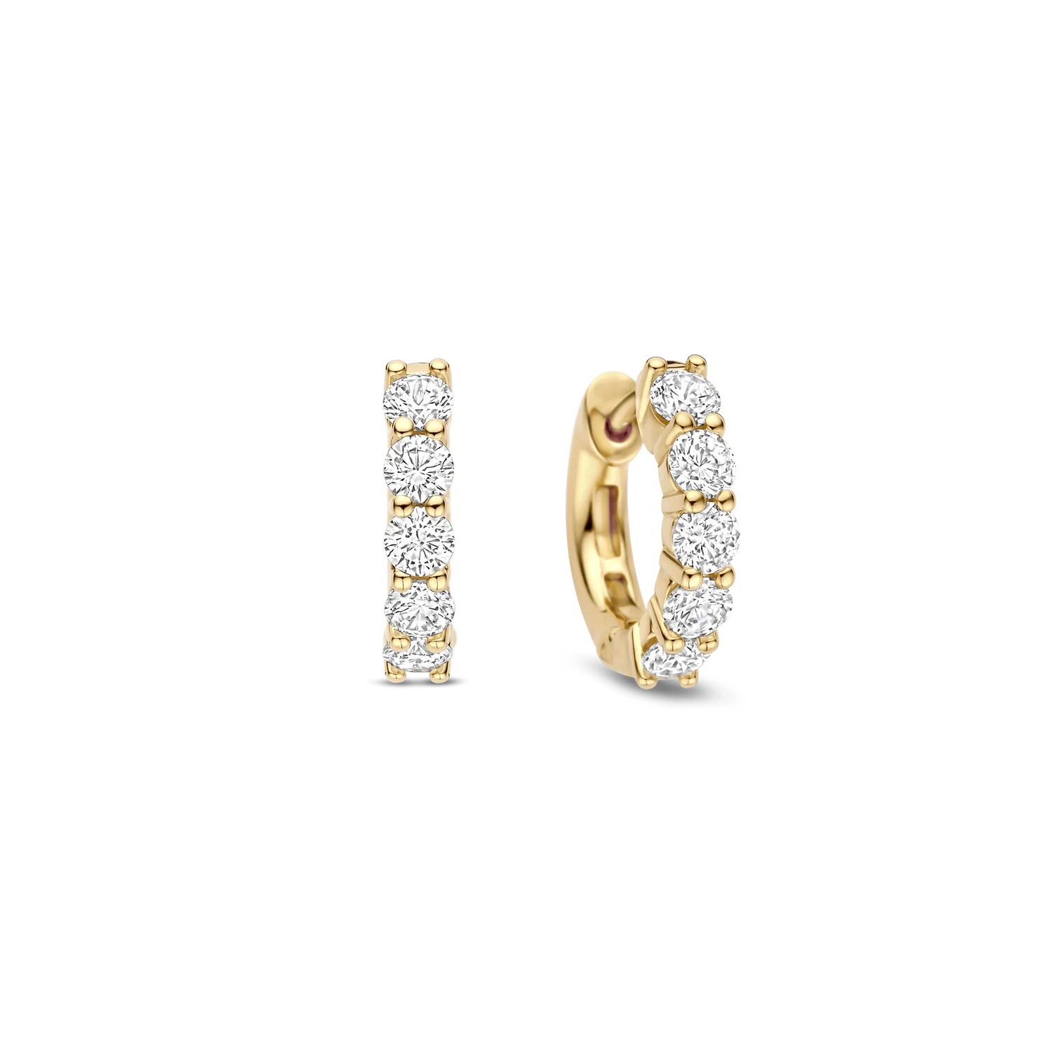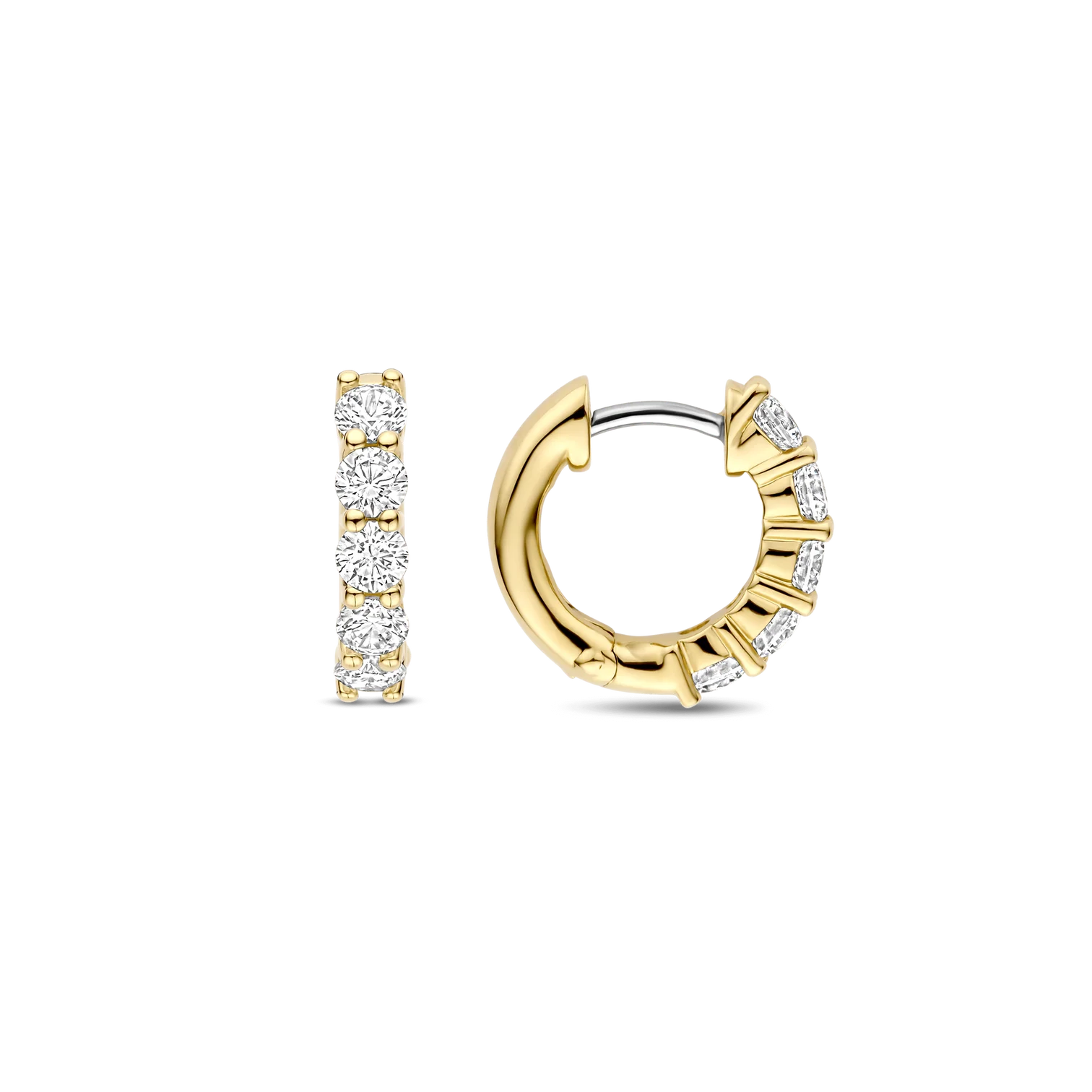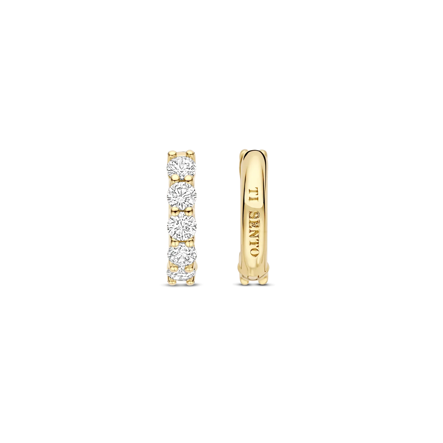 Aros TI SENTO modelo 7718ZY de argollas de plata esterlina 925 con recubrimiento de oro amarillo 18k y circonita cubica blanca en pave. Diametro 15mm