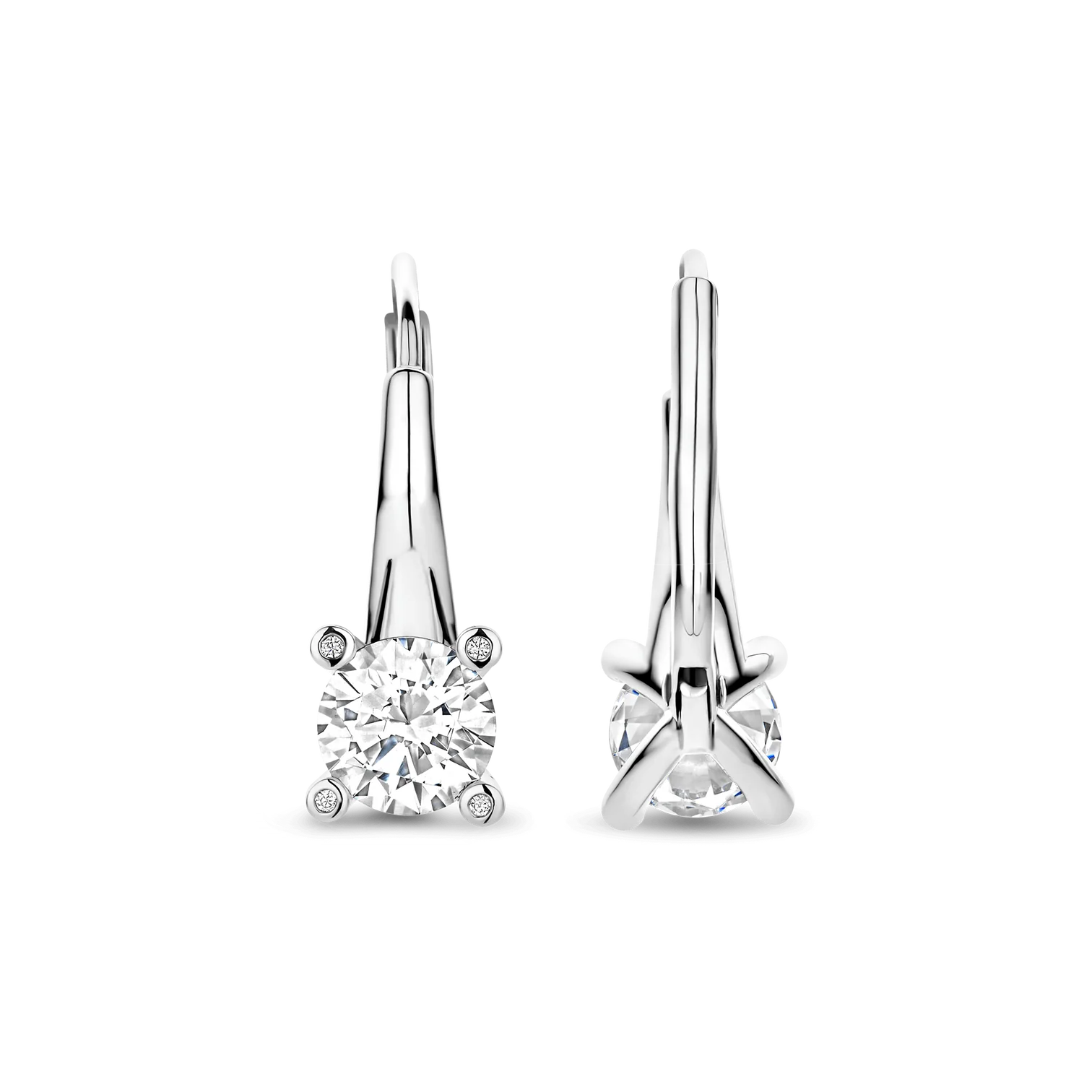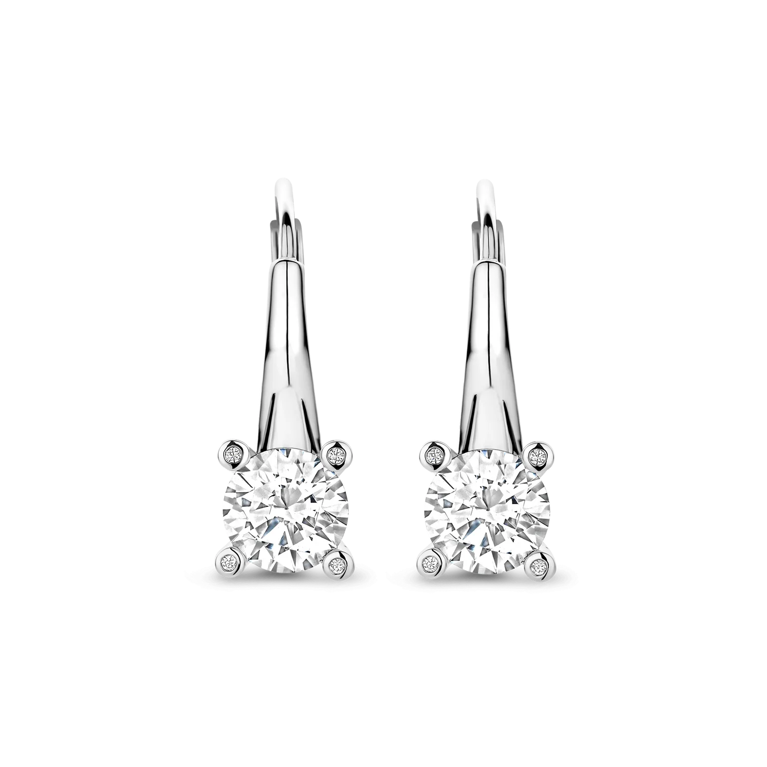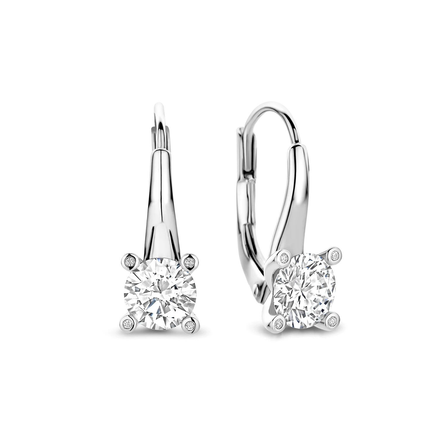 Aros TI SENTO modelo 78009ZI de plata esterlina 925 con recubrimiento de platino, con circonita cubica blanca (de 9mm) engasta en grifa. Cierre italiano. Largo 20mm