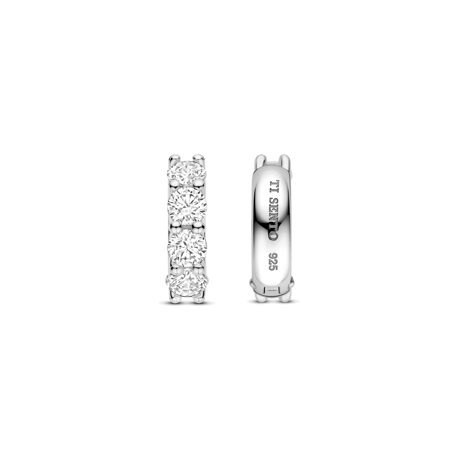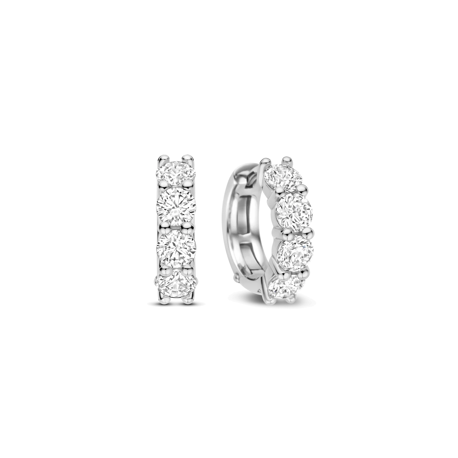 Aros de plata TI SENTO modelo 78023zi de plata esterlina 925 con recubrimiento de platino y circonita cubica blanca en pave. Diametro 15mm