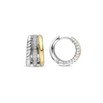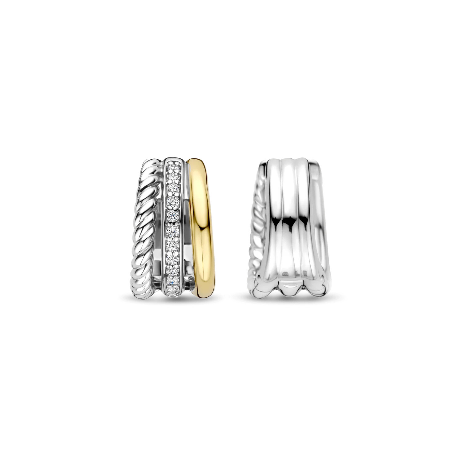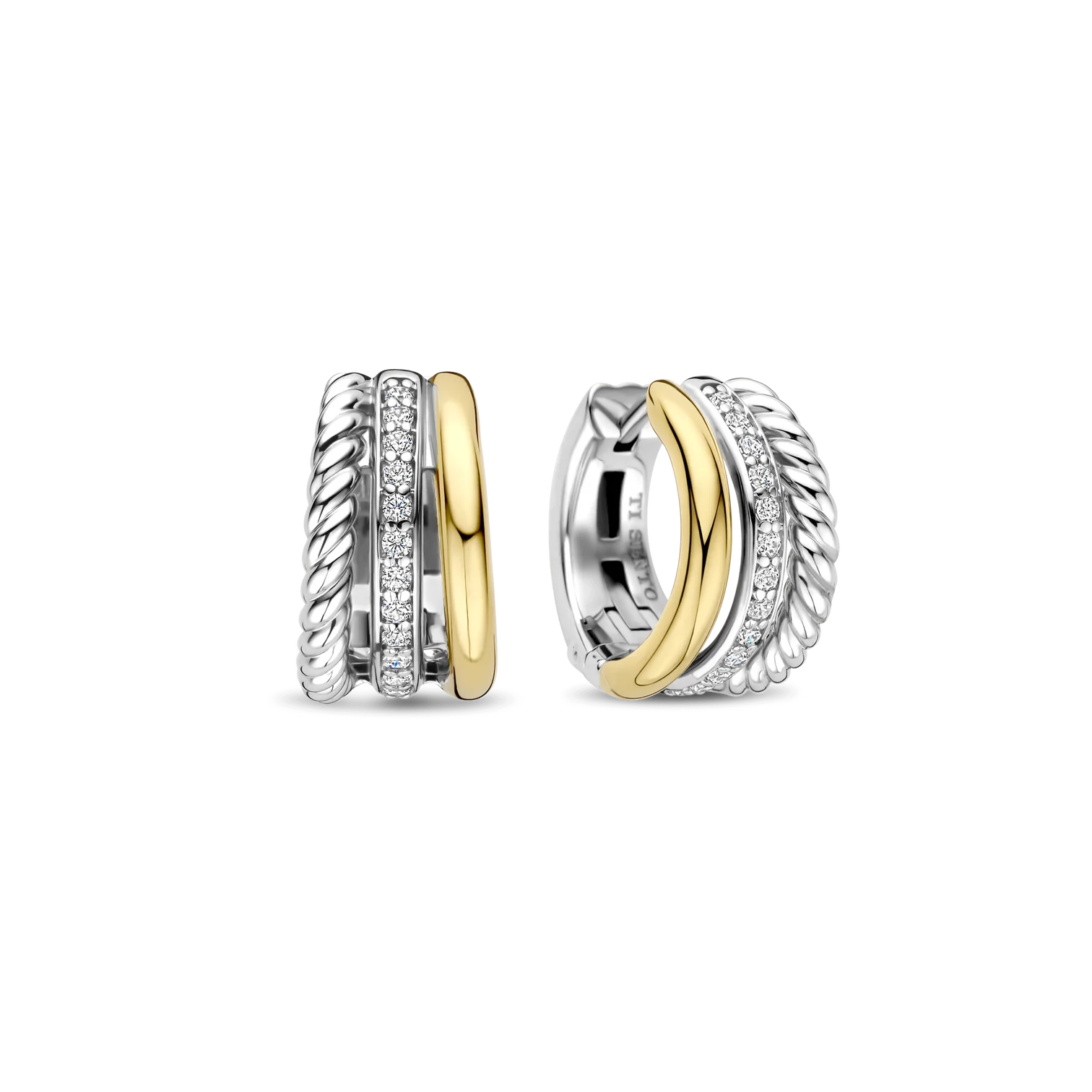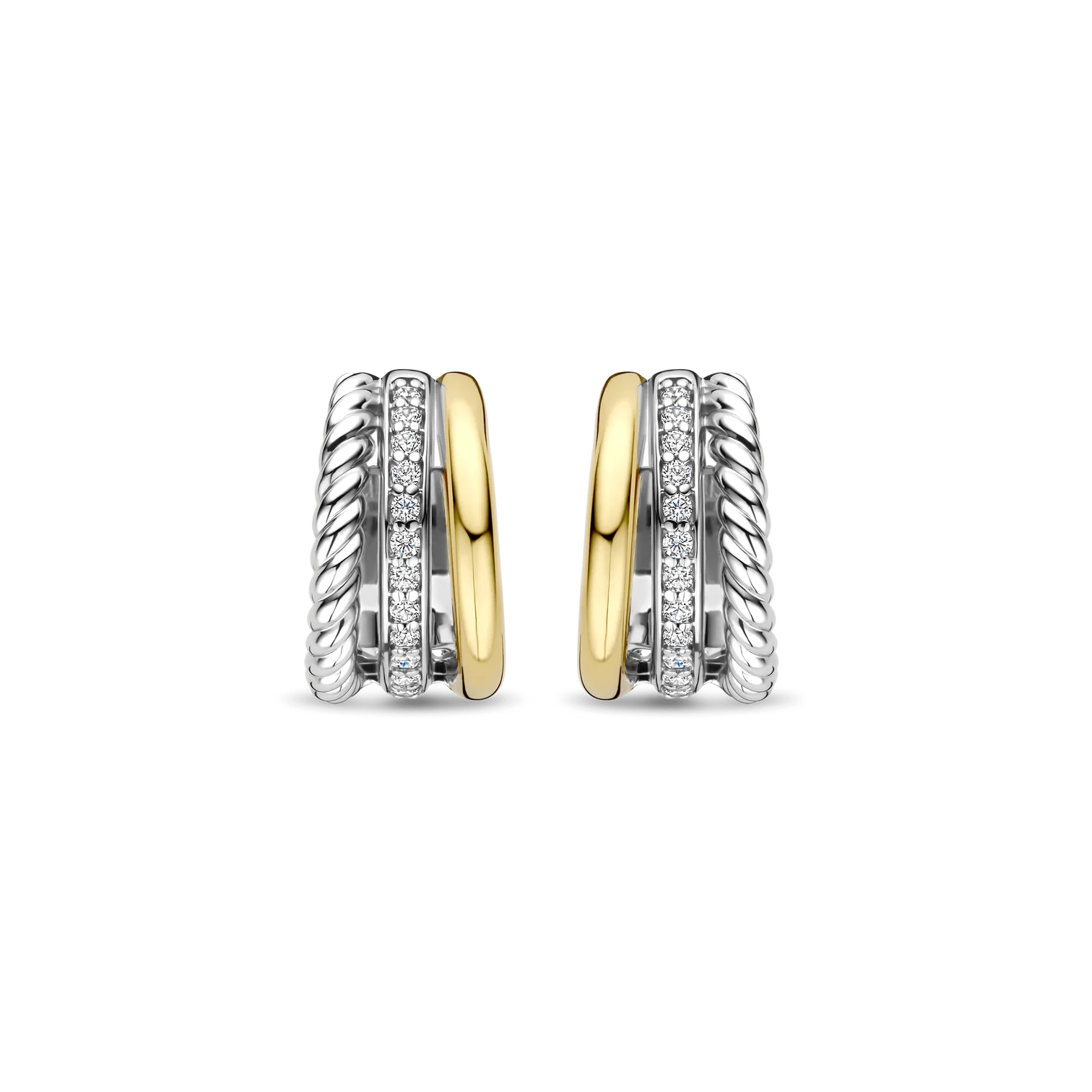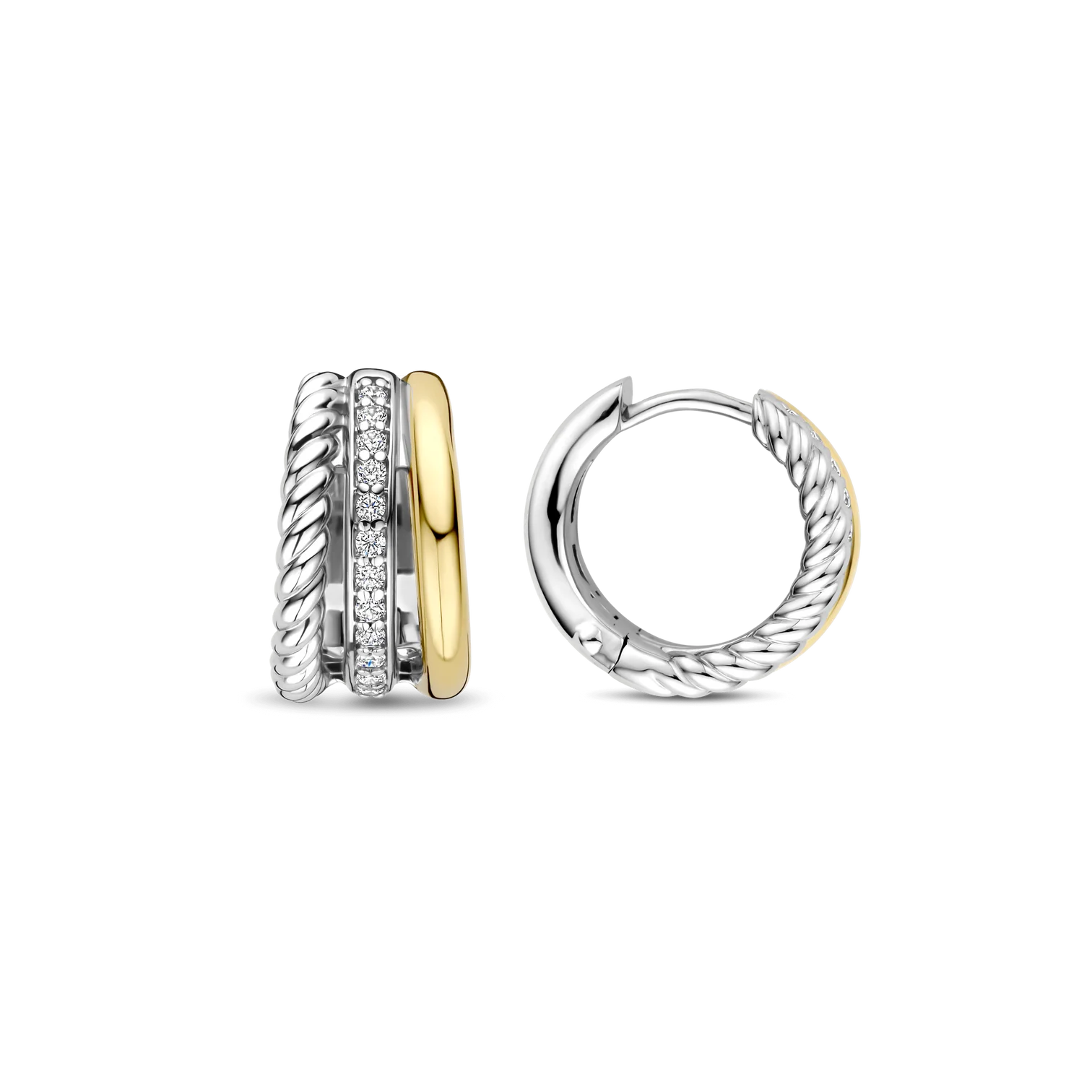 Aros TI SENTO modelo 78025zy de plata esterlina con recubrimiento en oro amarillo 18k y circonita cubica blanca. 14mm de diametro.