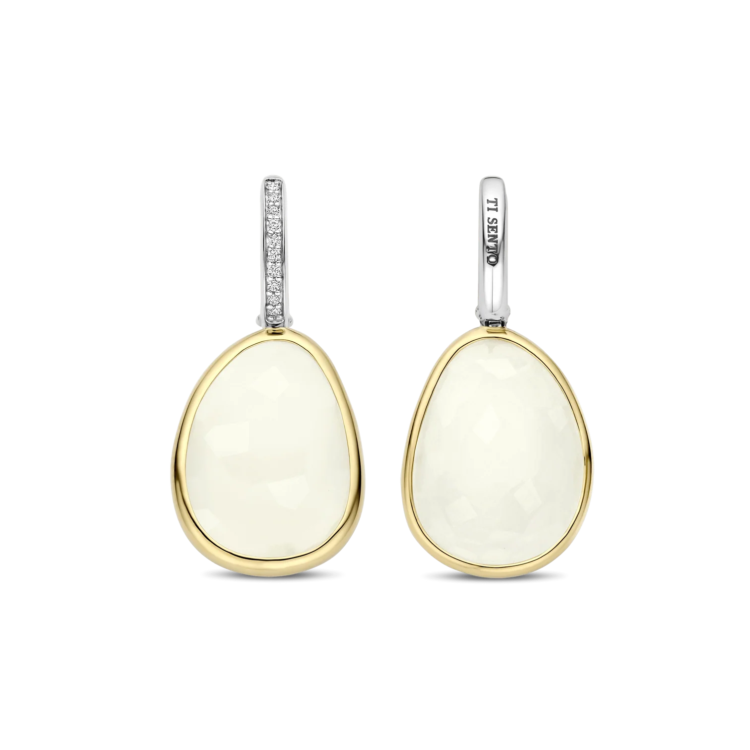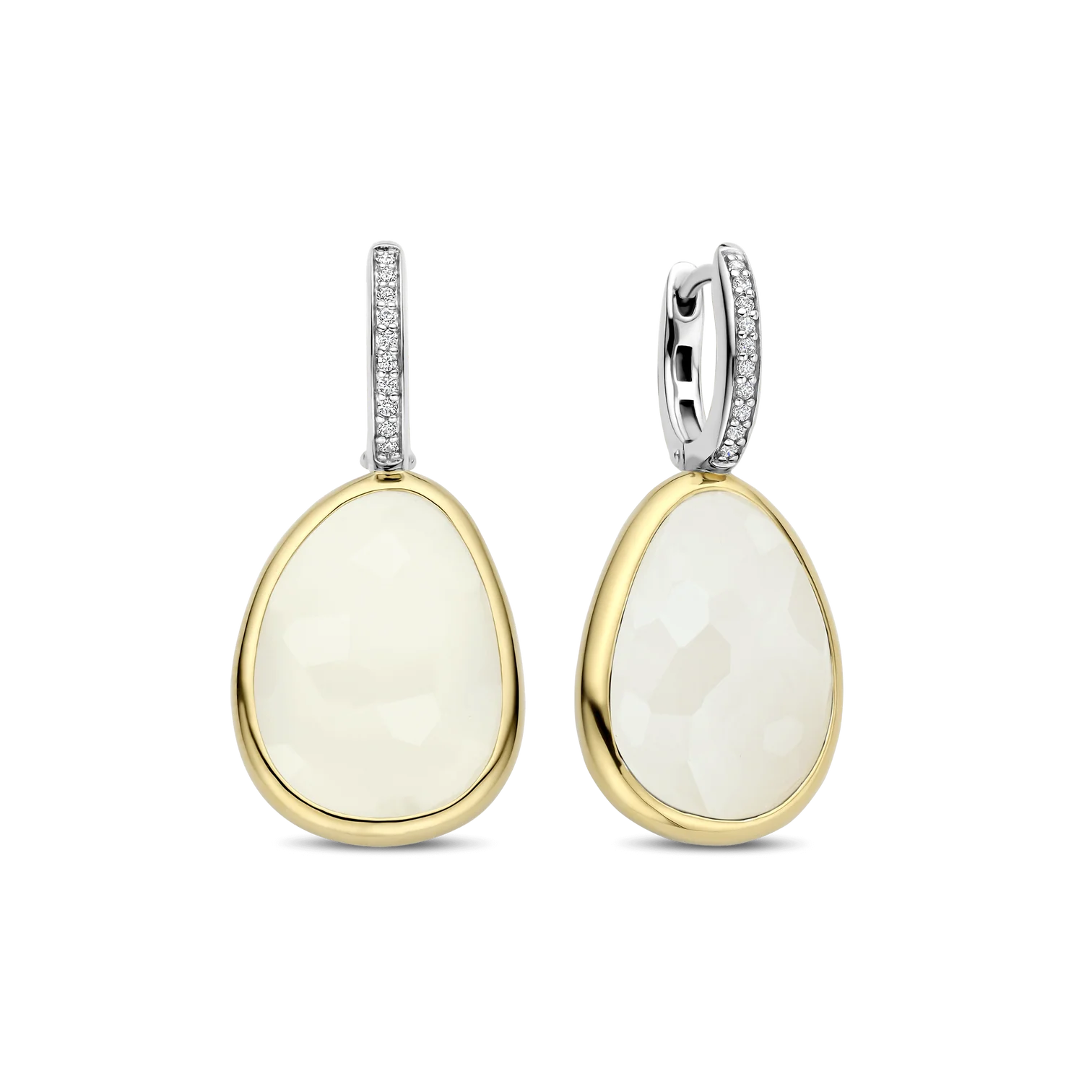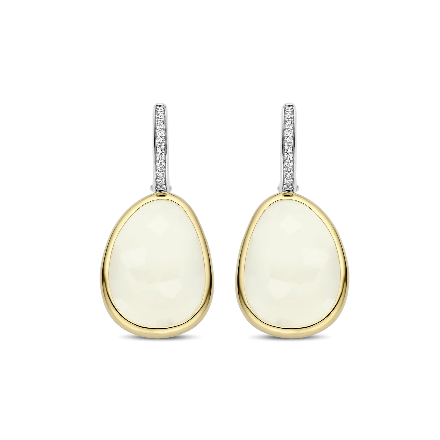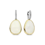 Aros TI SENTO 78026mw en plata esterlina con recubrimiento en oro amarillo 18k y platino con circonita cubica blanca en pave y circonita lechosa facetada.