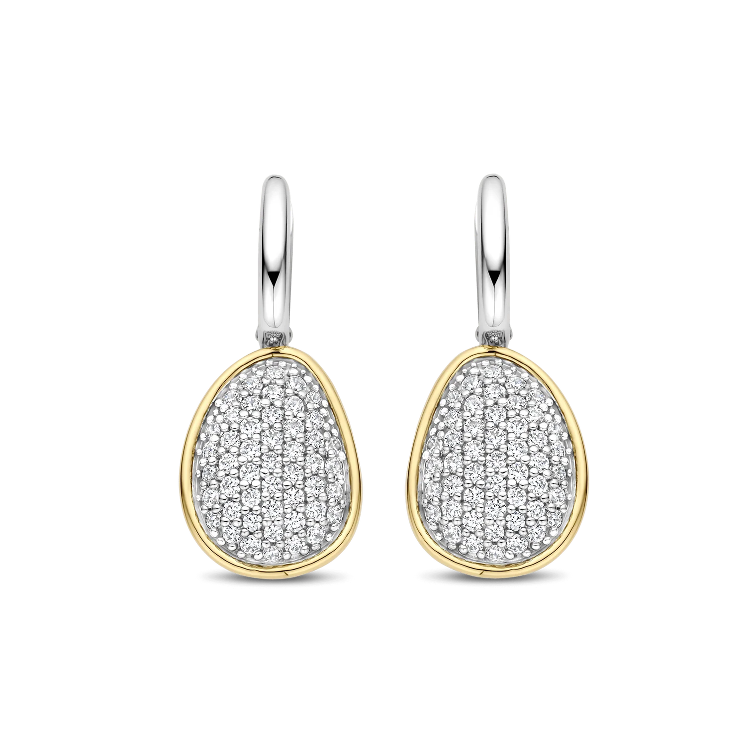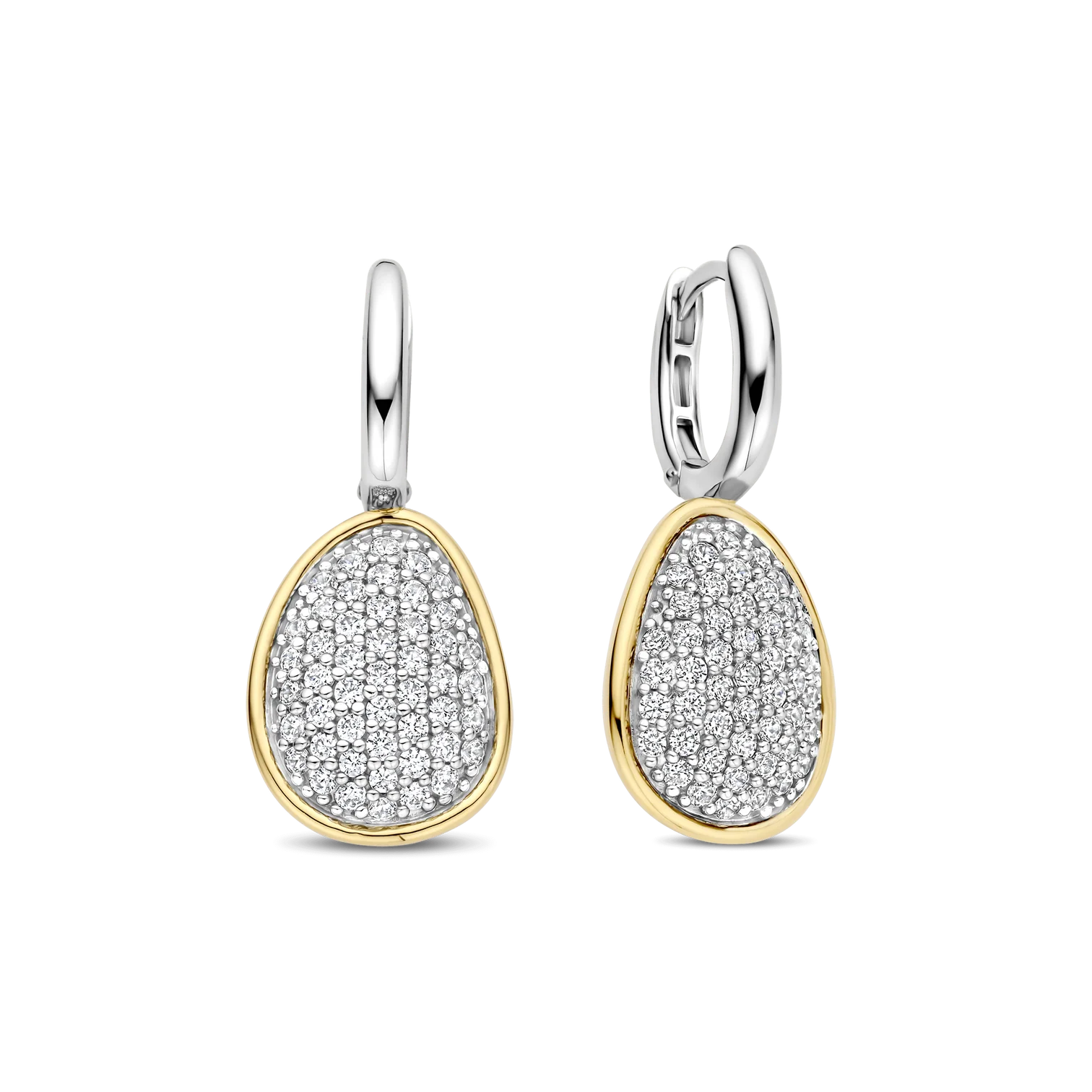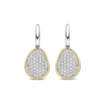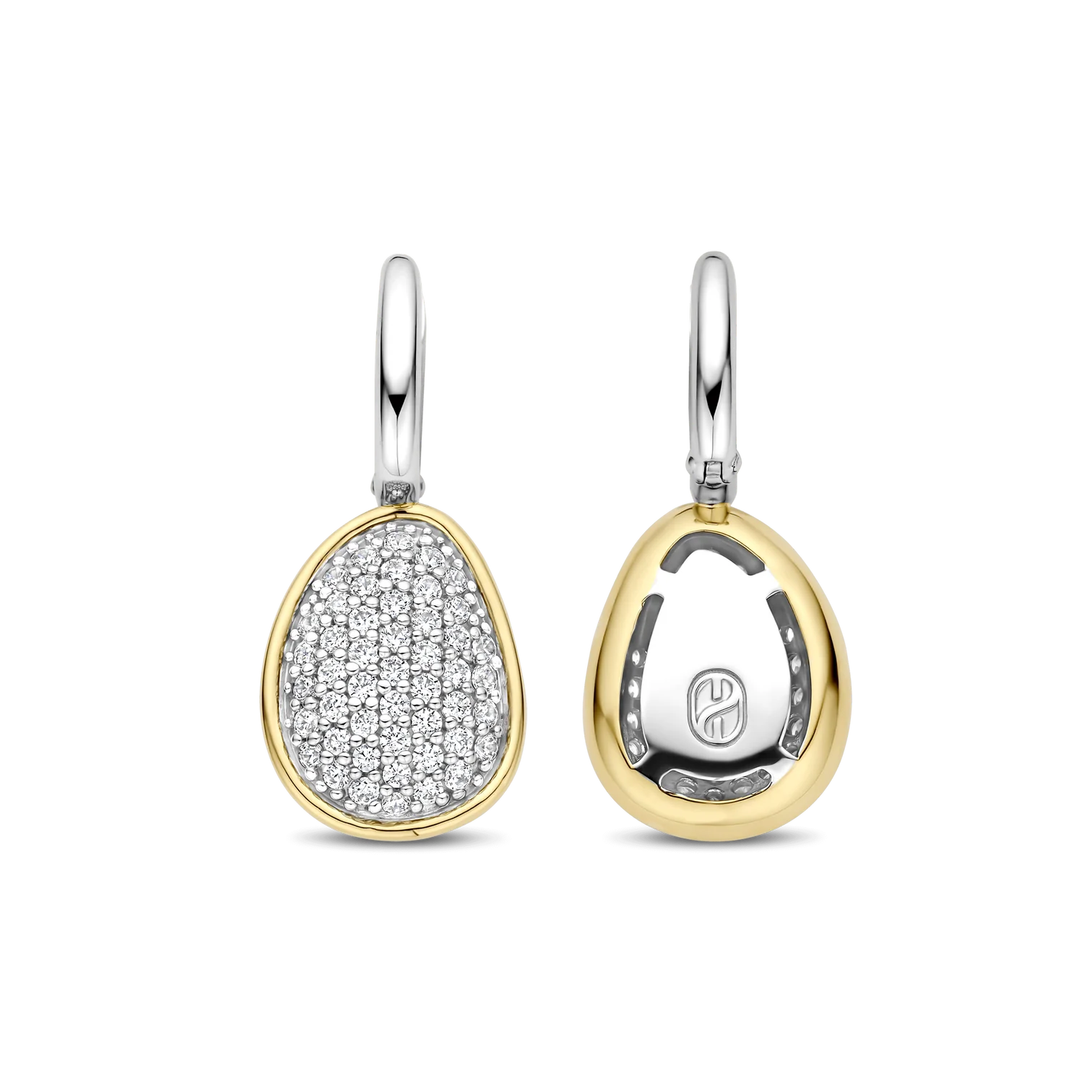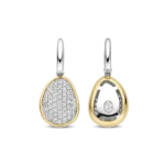 Aros TI SENTO 78027zy de plata esterlina con recubrimiento en platino y oro 18k con circonita cubica blanca engastadas en pave sujetos a argollitas mini. Largo 29mm