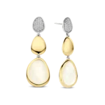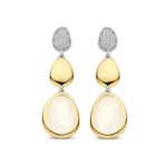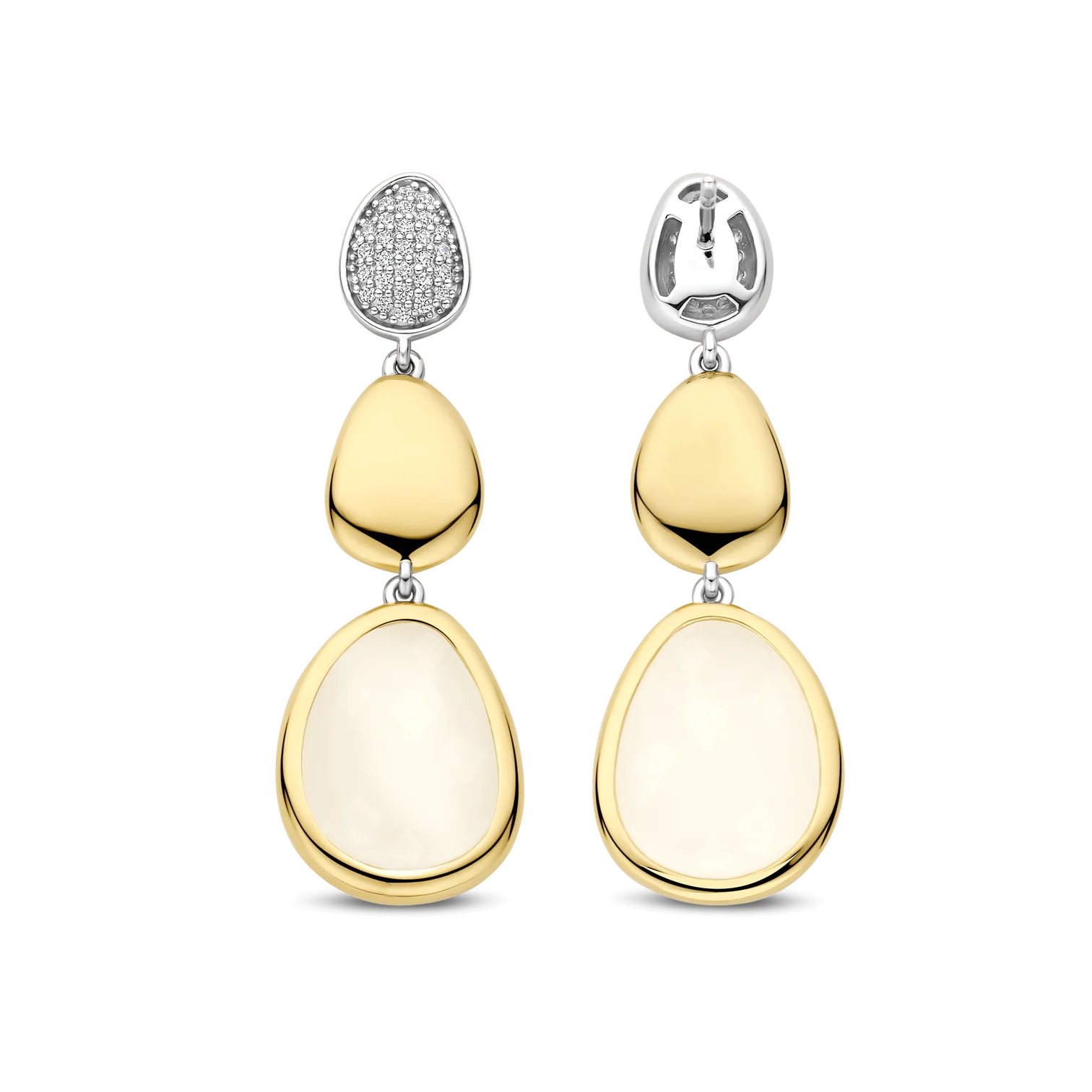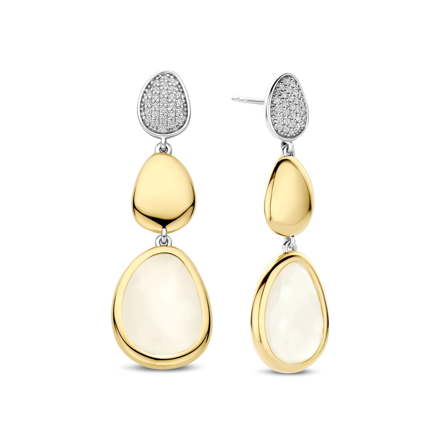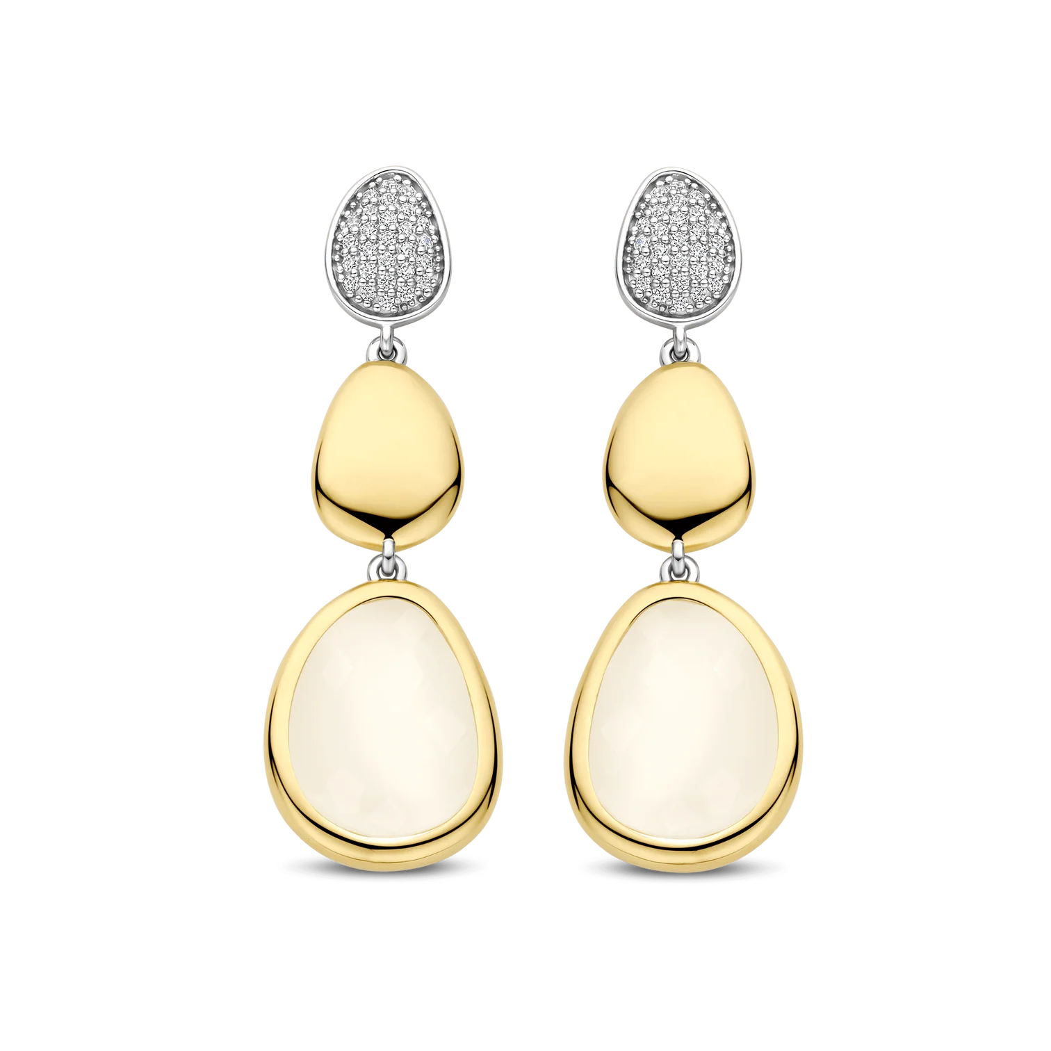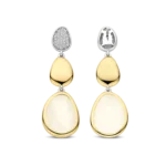 Aros TI SENTO modelo 78028MW de plata esterlina con recubrimiento en oro amarillo 18k, circonita cubica en pave y una piedra lechosa facetada.