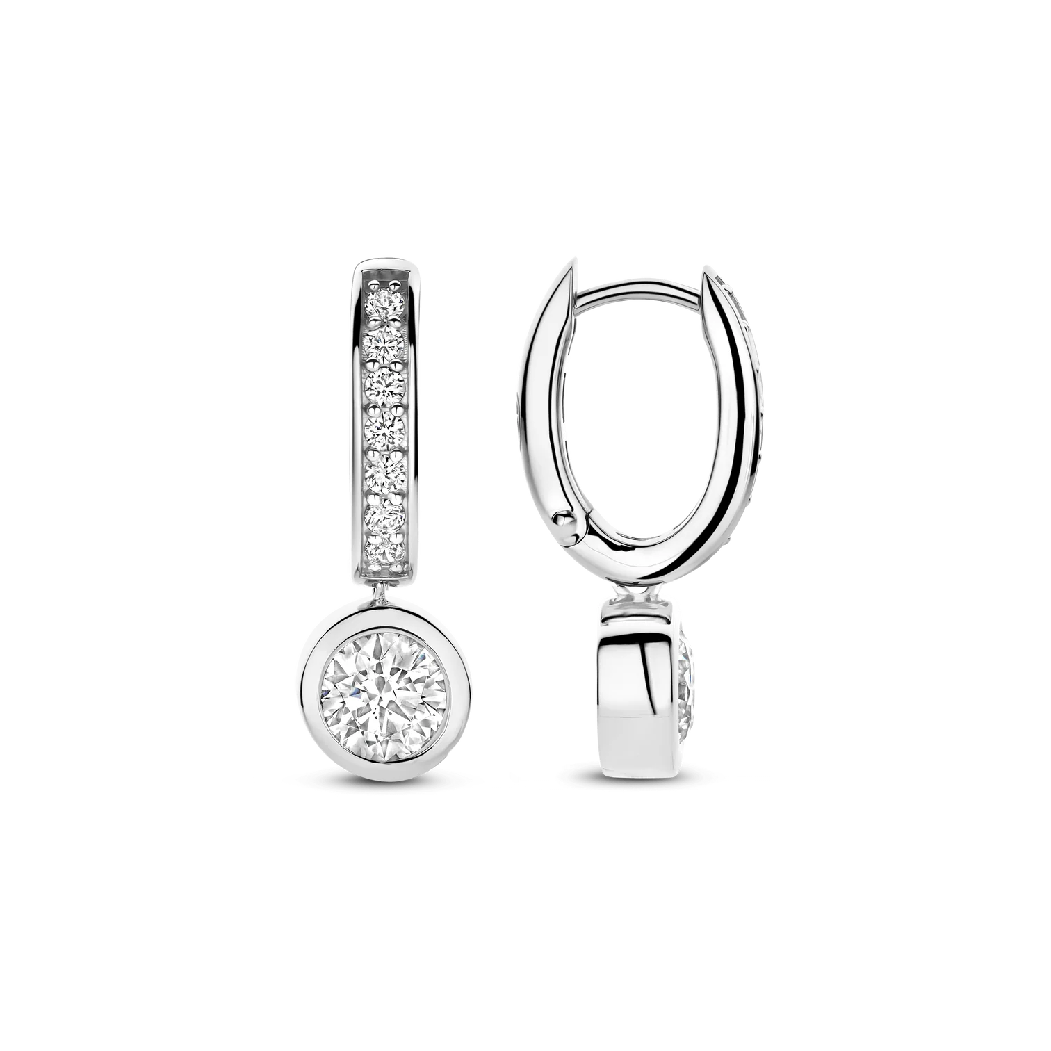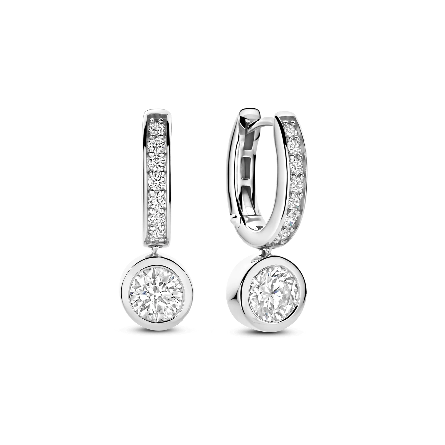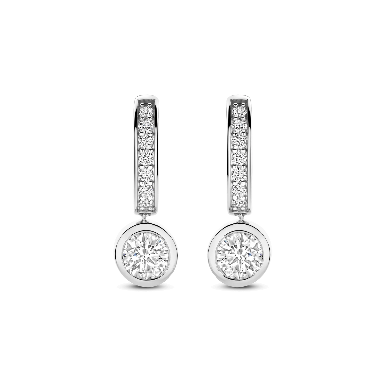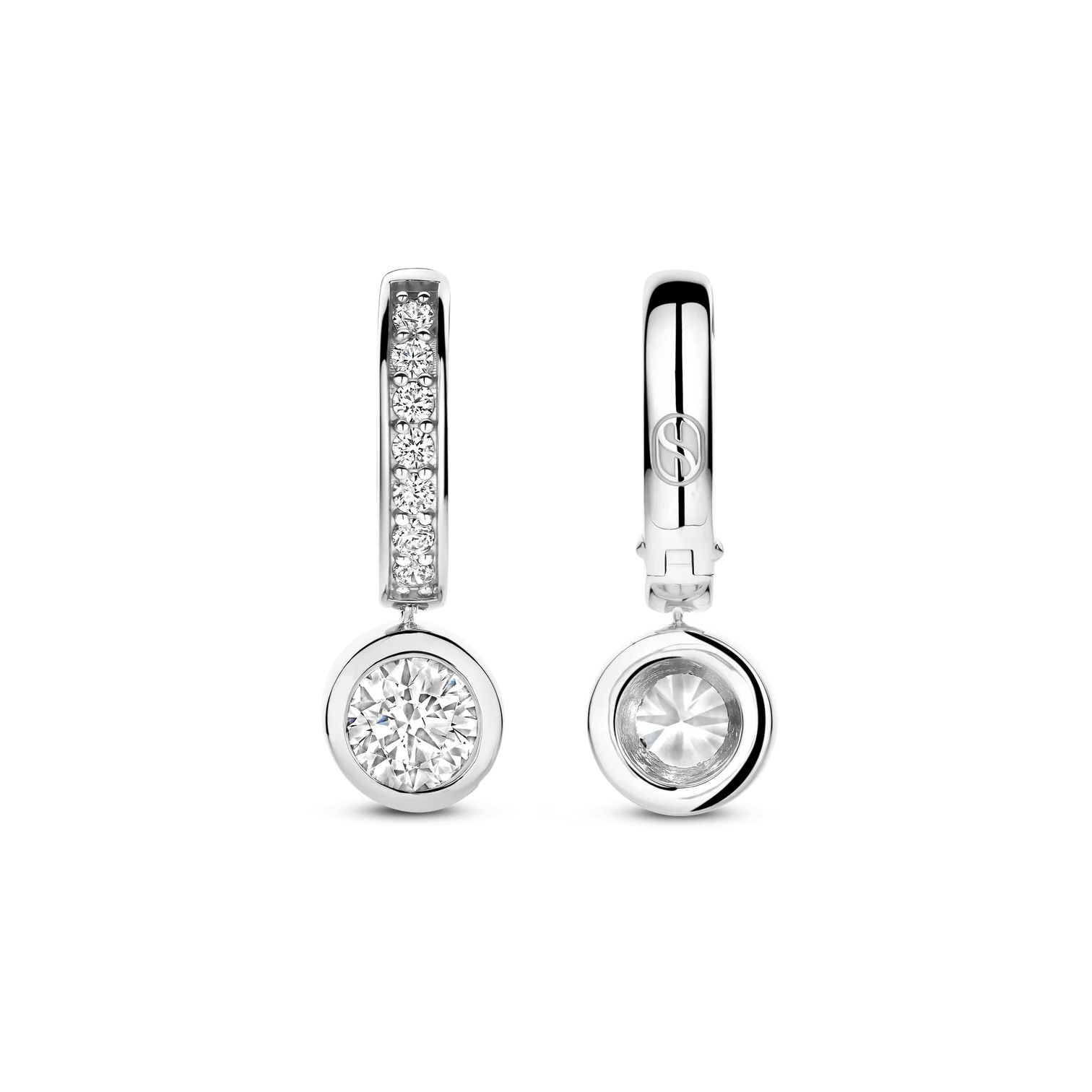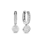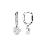 Aros ti sento Modelo 78032zi de plata esterlina con recubrimiento en platino, con circonita cubica blanca engastadas. Largo 23mm