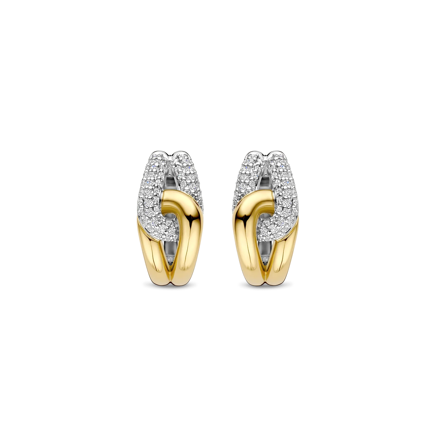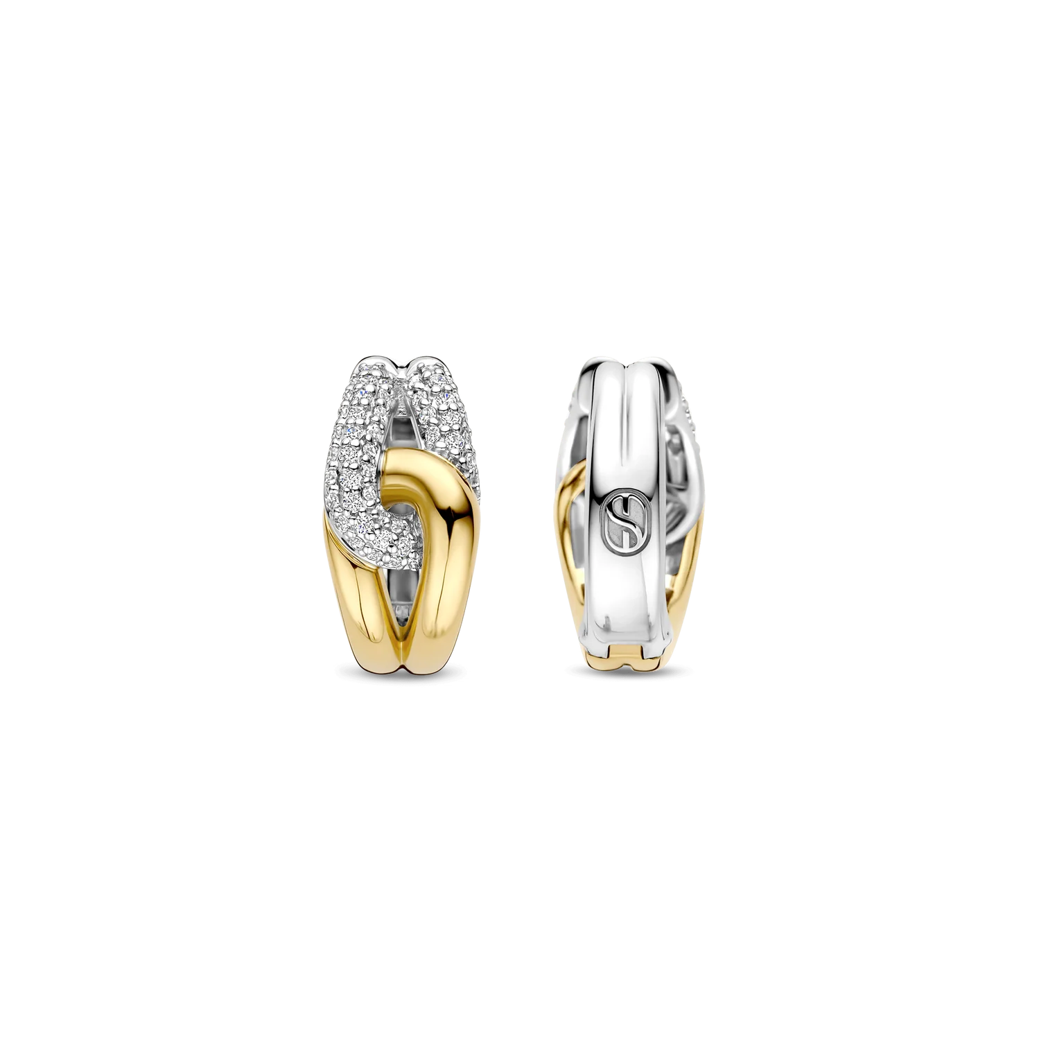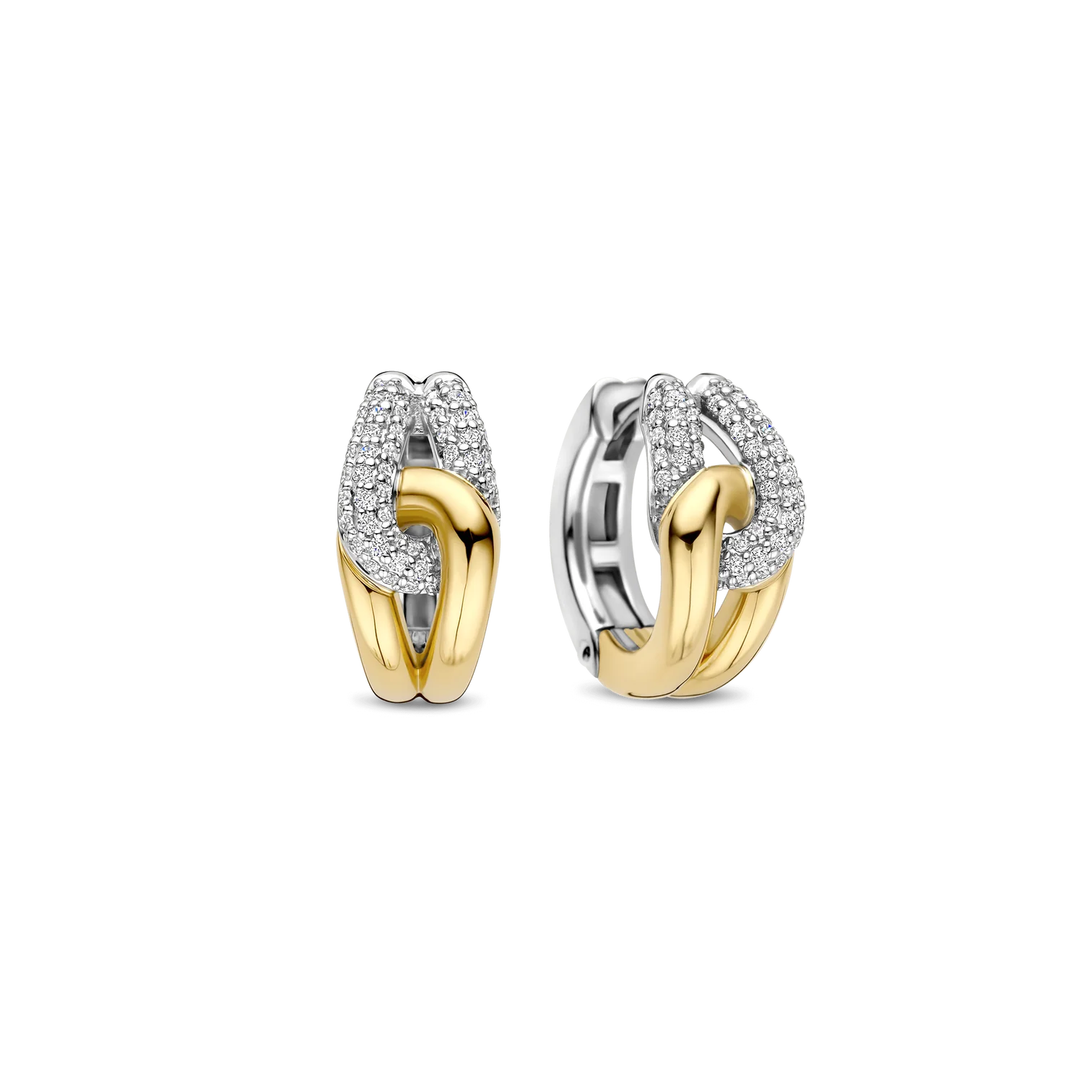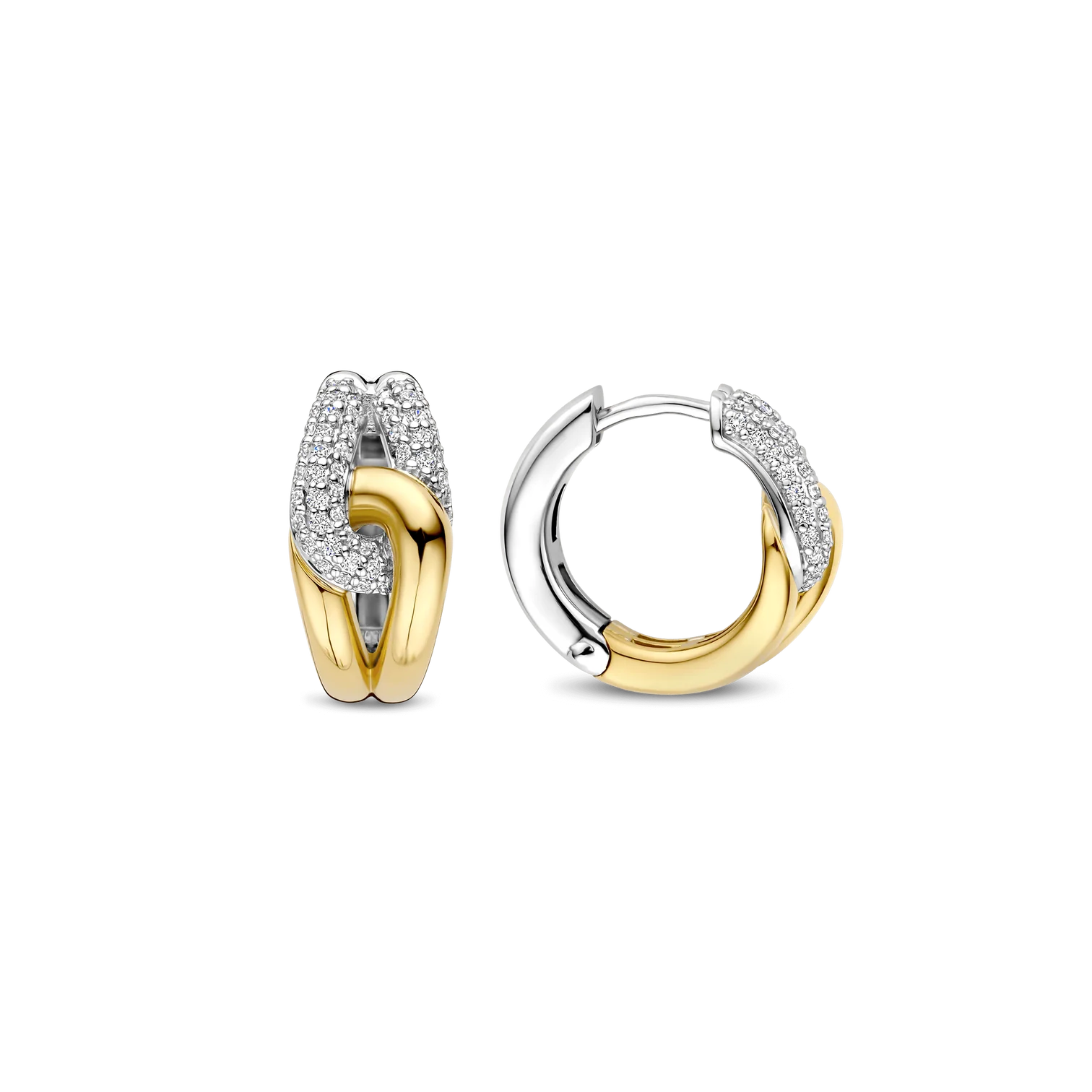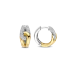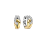 Aros TI SENTO modelo 78033zy de plata esterlina con recubrimiento de oro 18k y platino estilo argolla anudada con circonita cubica blanca, diámetro 15mm.