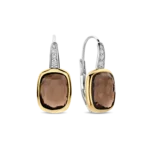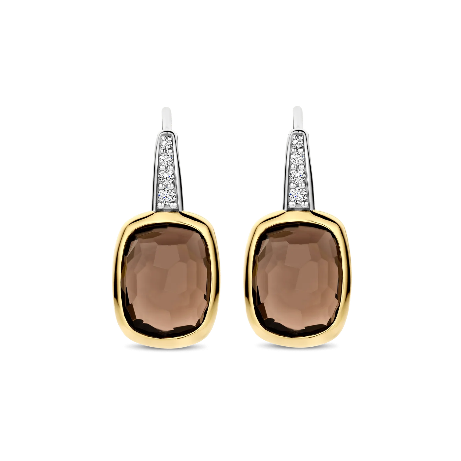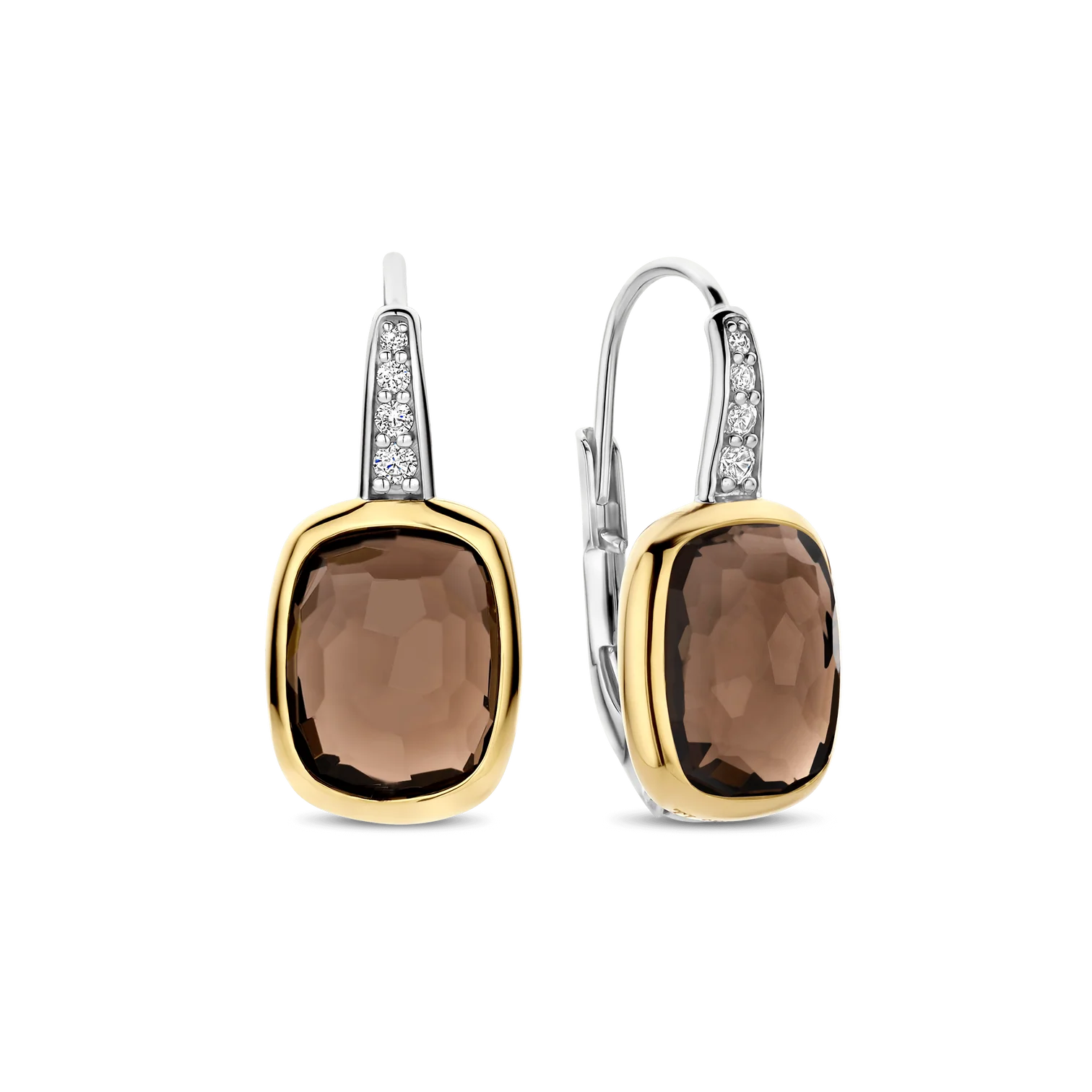 Aros TI SENTO modelo 78041SQ de plata esterlina con recubrimiento de oro amarillo 18k con circonita color café tome facetada.