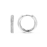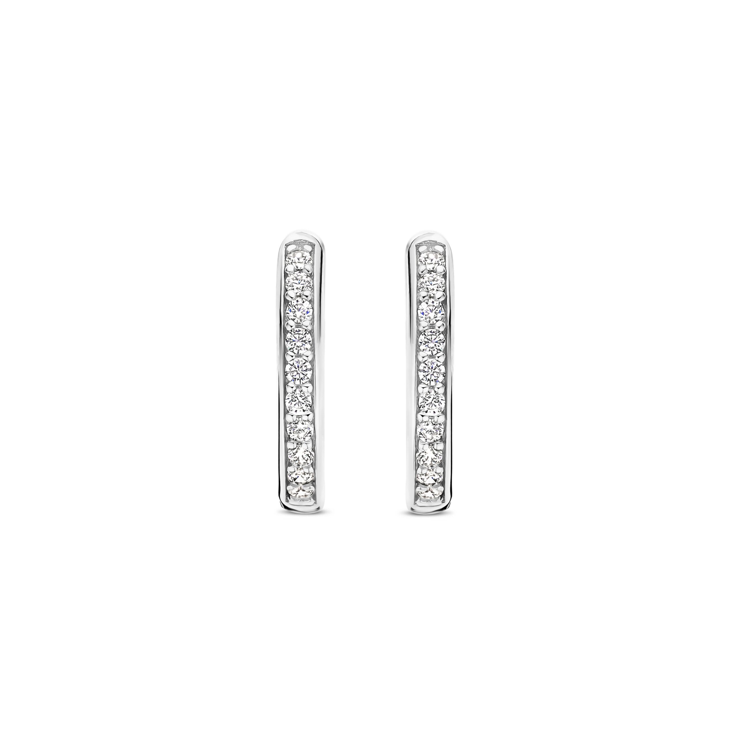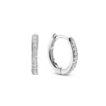 Aros TI SENTO 7812ZI de plata 925, adornados con un deslumbrante pavé de diminutas circonitas cúbicas, Bañados en platino para protegerlos del desgaste diario y mantener su luminosidad. Con un diámetro de 14 mm, son el básico de lujo perfecto para tu colección de argollas.