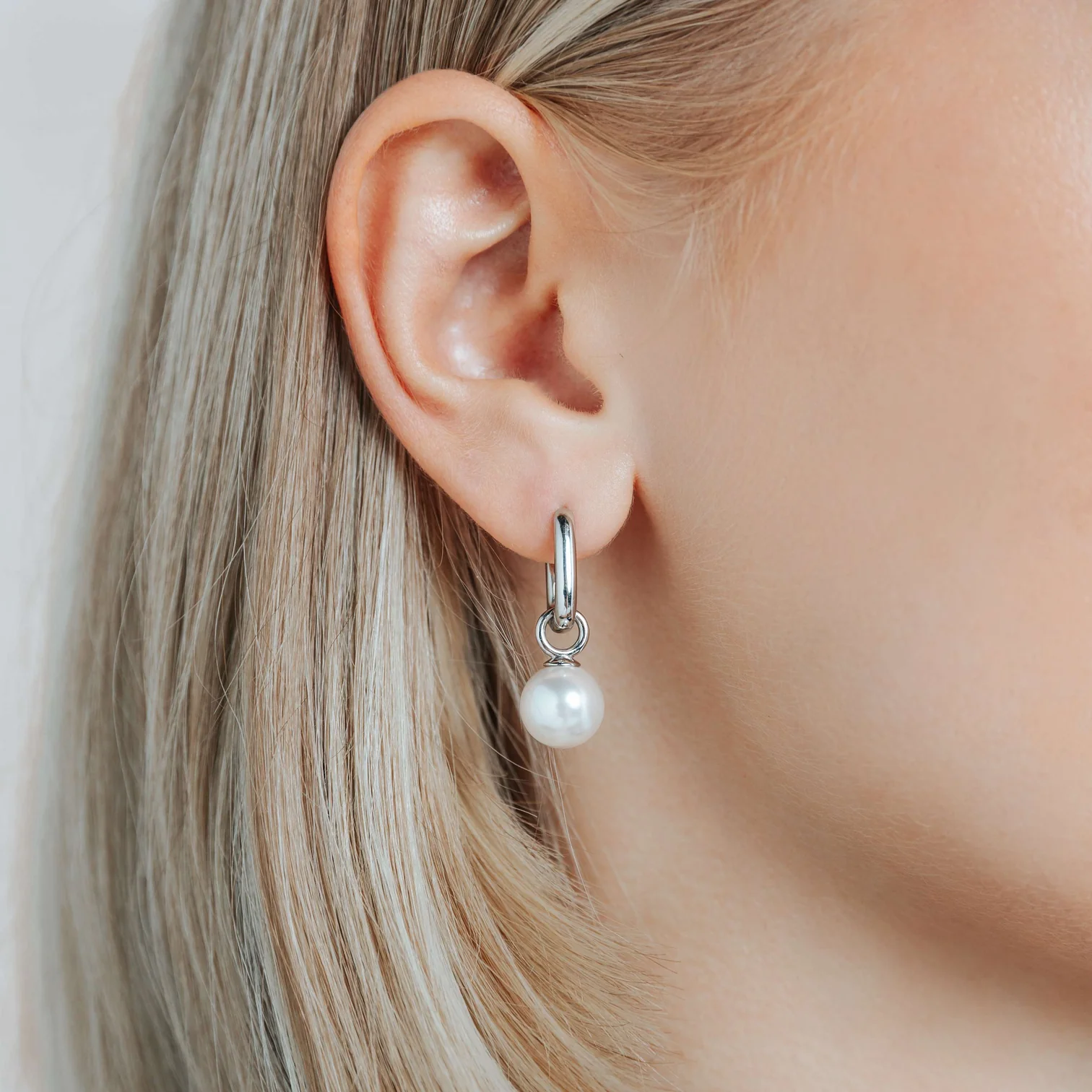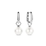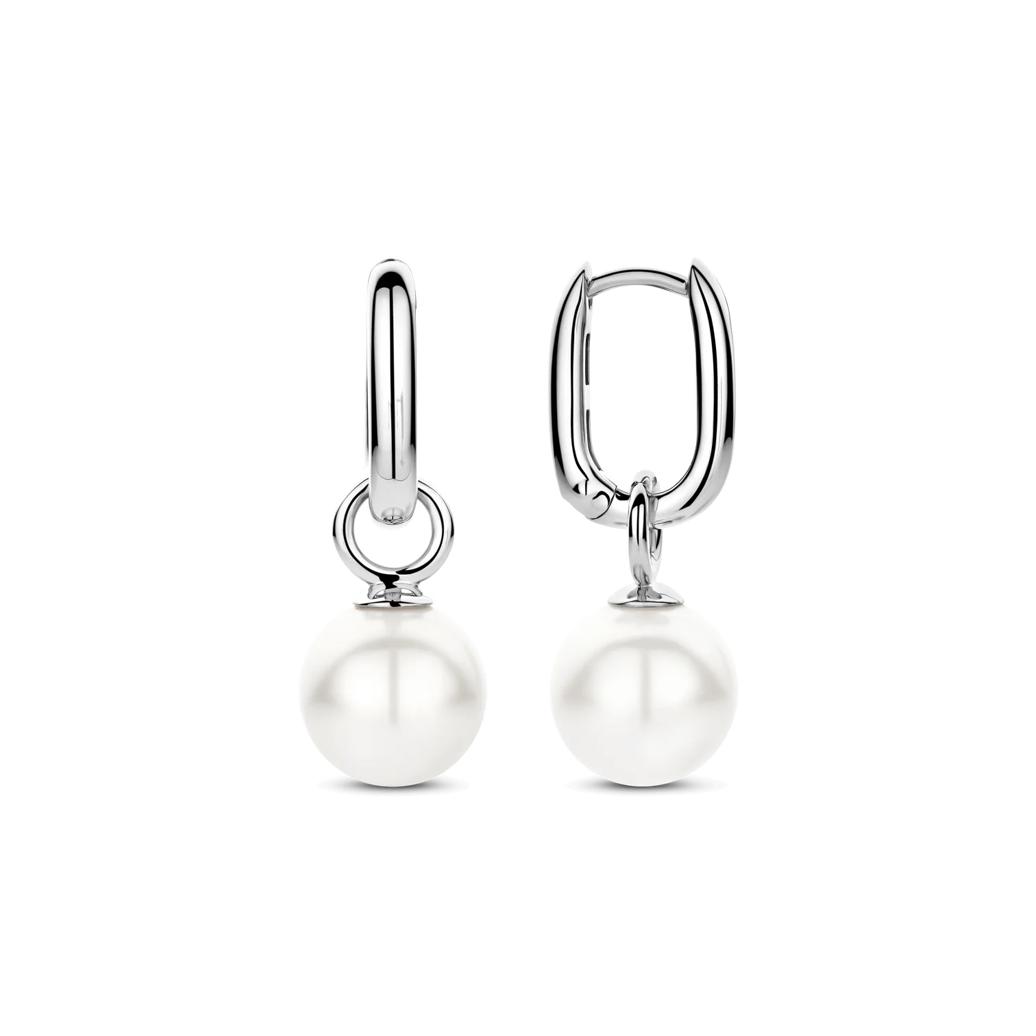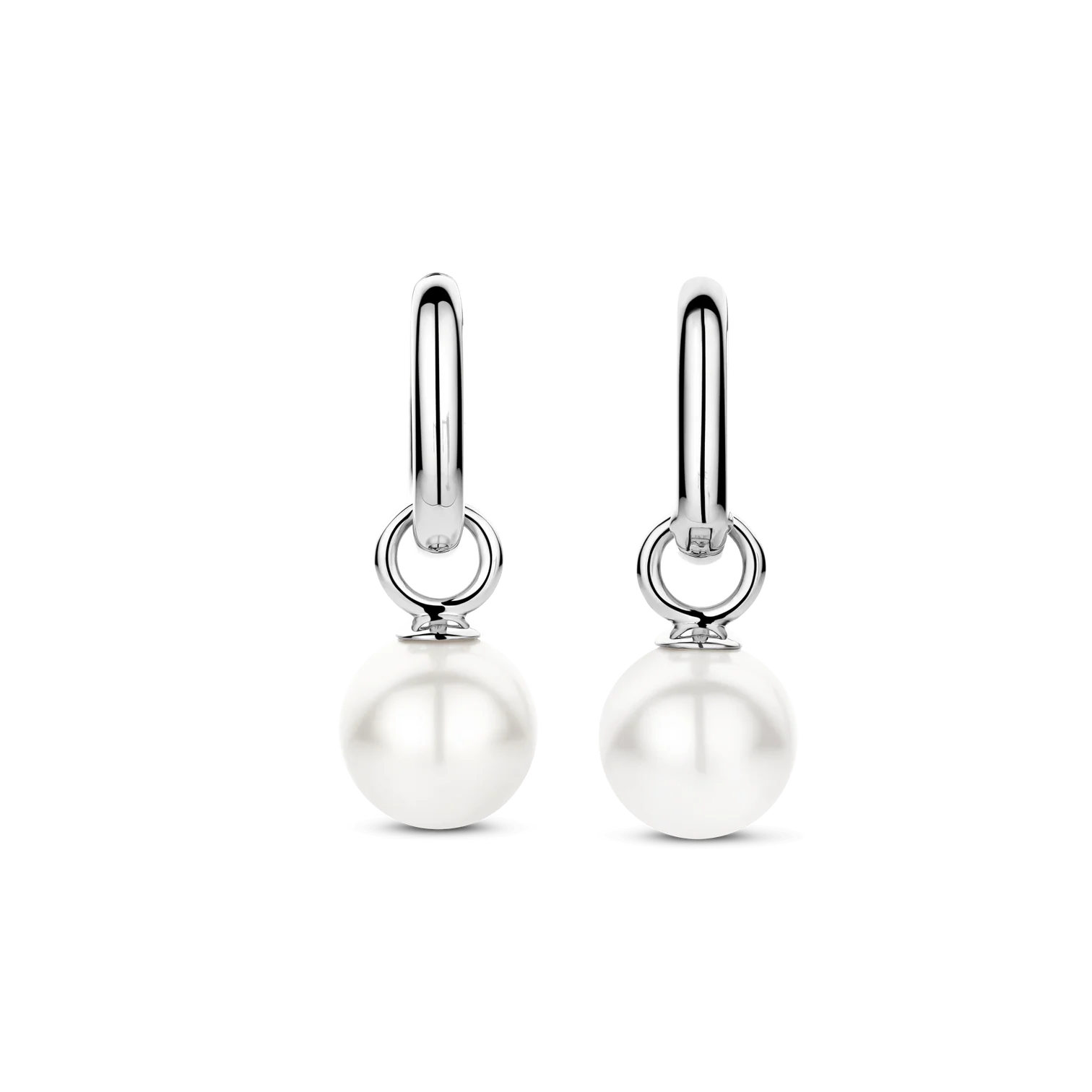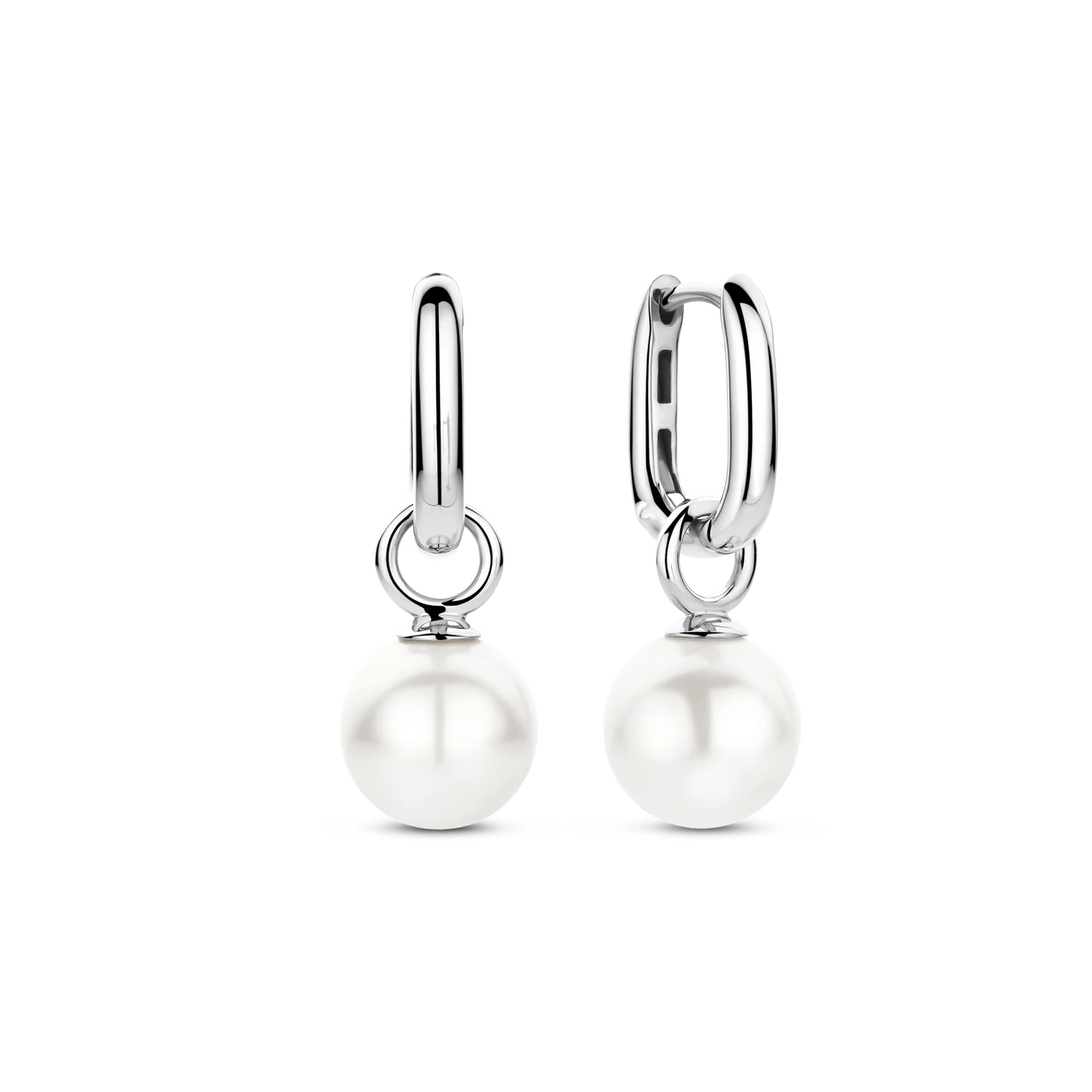 Aros TI SENTO modelo 7848wp de plata esterlina con recubrimiento a platino con perlas con núcleo de plata de 10 milimetros de diametro, largo 14mm