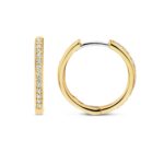 Argollas TI SENTO 7959ZY en plata de ley 925 de primera calidad y chapados en oro amarillo 18k, adornados con un delicado pavé de diminutas circonitas cúbicas, encarnan la esencia de la elegancia refinada y la sofisticación moderna. Diseñados con una meticulosa atención al detalle. Se convertirán en tu nuevo accesorio imprescindible para cualquier ocasión. Estos aros cuentan con un delicado diámetro de 18 mm, lo que los convierte en una pieza cautivadora para tu colección de joyas.