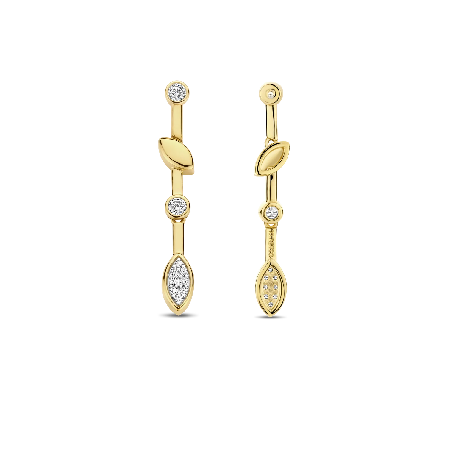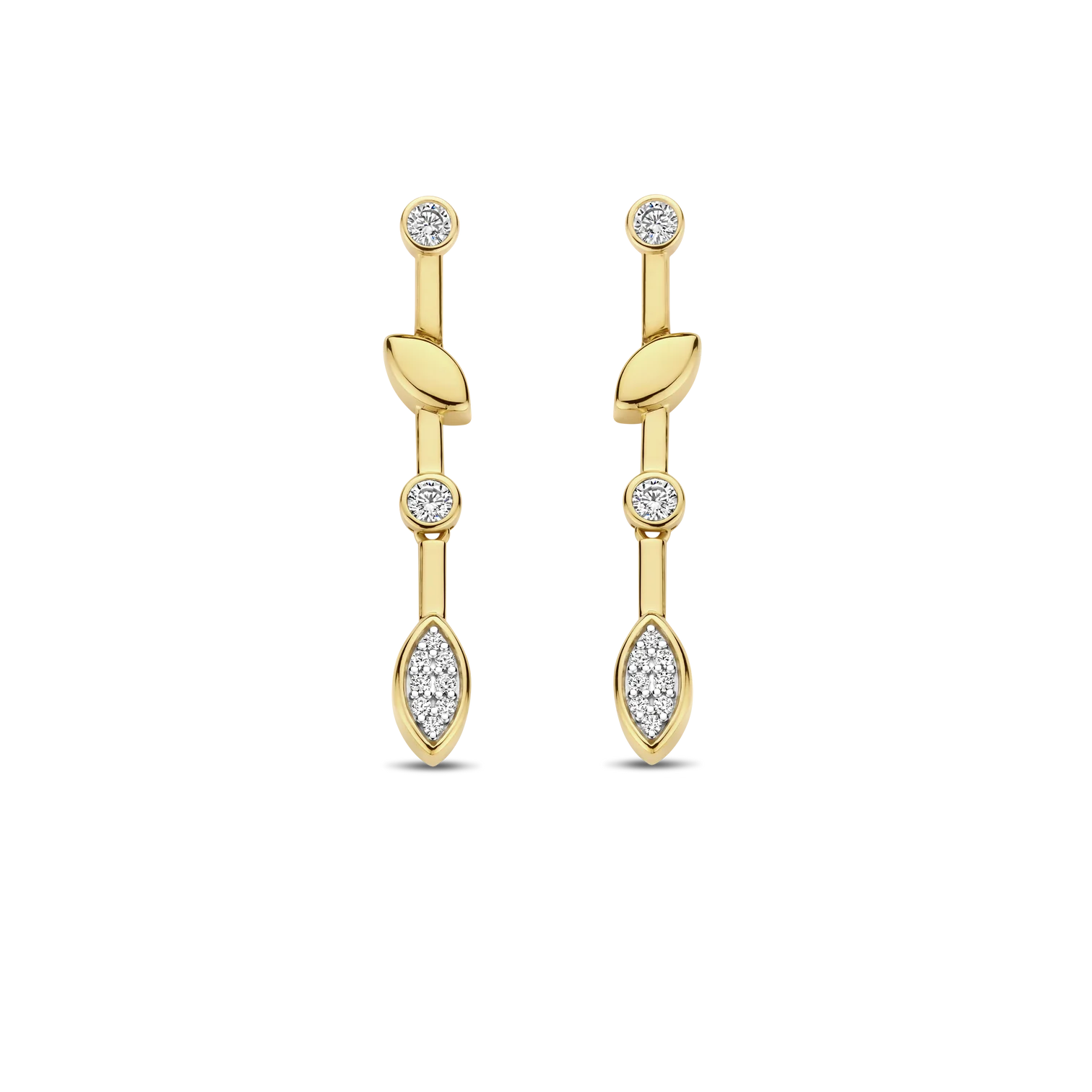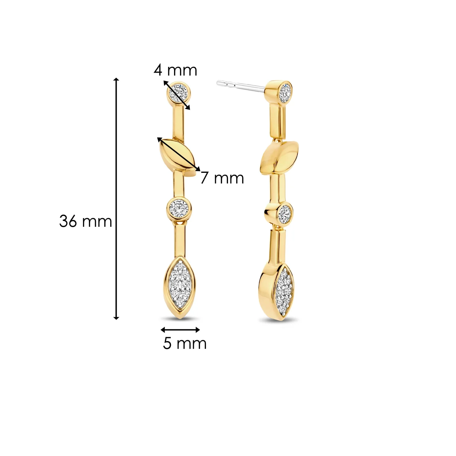 Aros Ti sento, Modelo 7988zy, de plata esterlina con recubrimiento de oro amarillo 18k con circonita cubica blanca engastadas en bisel. Largo 36mm