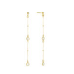 Aros de plata esterlina con recubrimiento en oro amarillo 18k con circonita cubica blanca engastada en bisel y cadena de eslabones. Largo 60mm